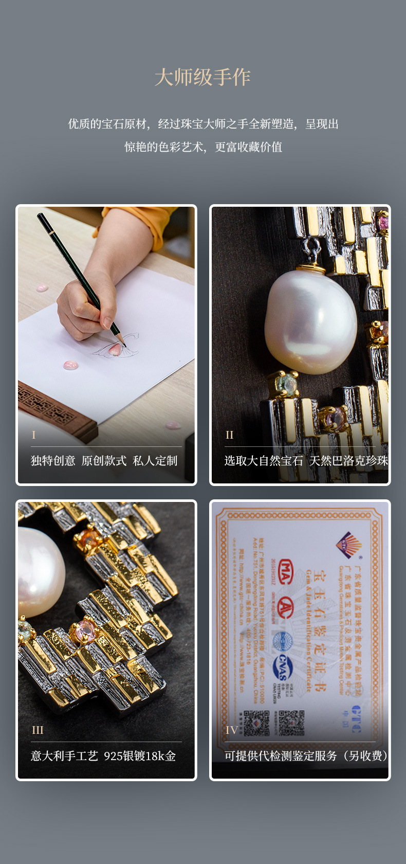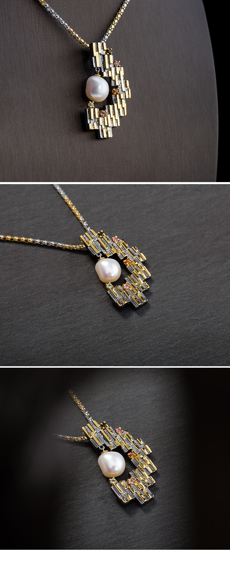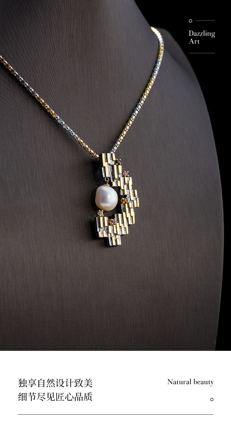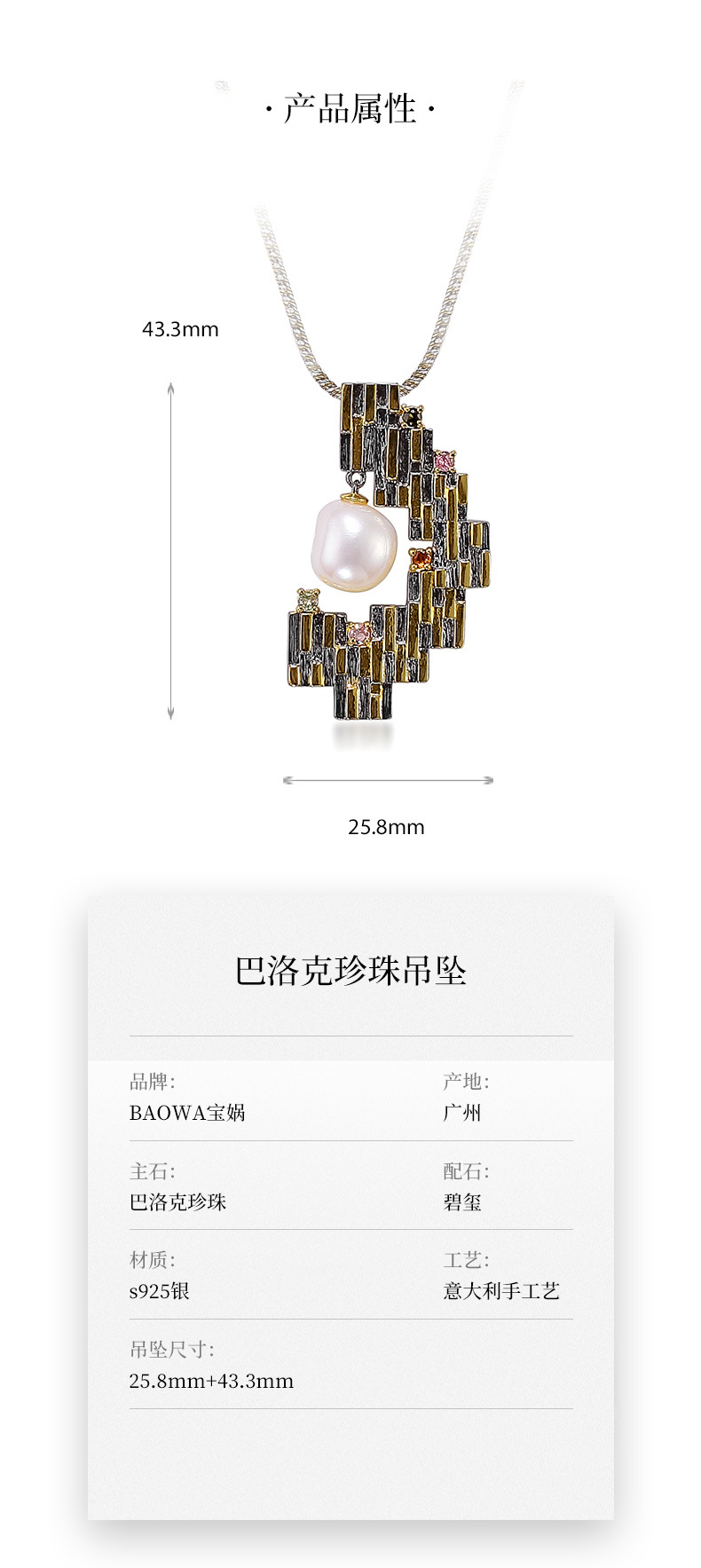 BW-TP3696Y意大利工艺S925银镶嵌异形珍珠项链女士时尚吊坠