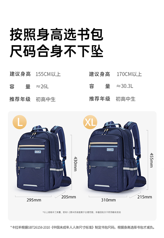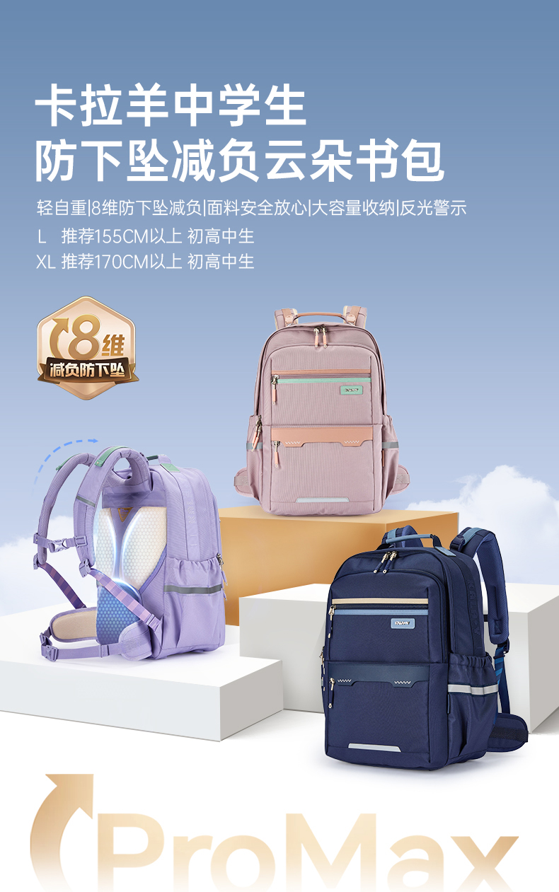 【8维减负防下坠】卡拉羊中学生8维减负ProMax云朵书包晴空系列CX5185/L