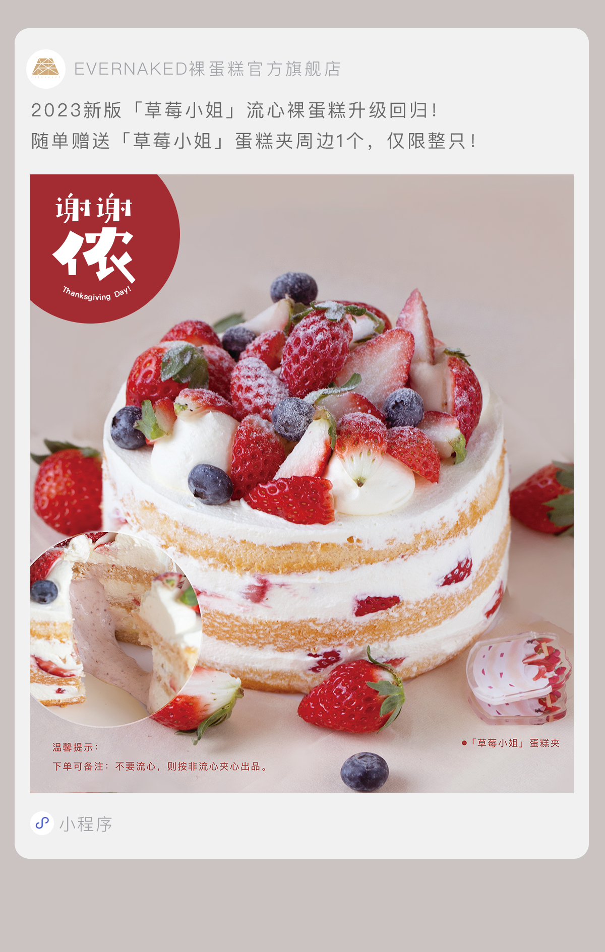 「草莓小姐」流心裸蛋糕(下单可备注:不要流心,则按非流心夹心出品)