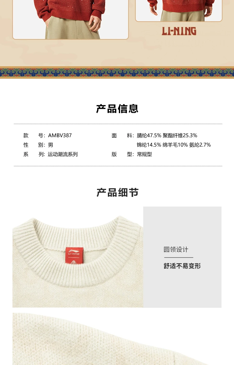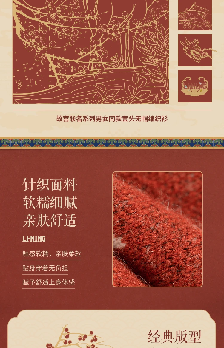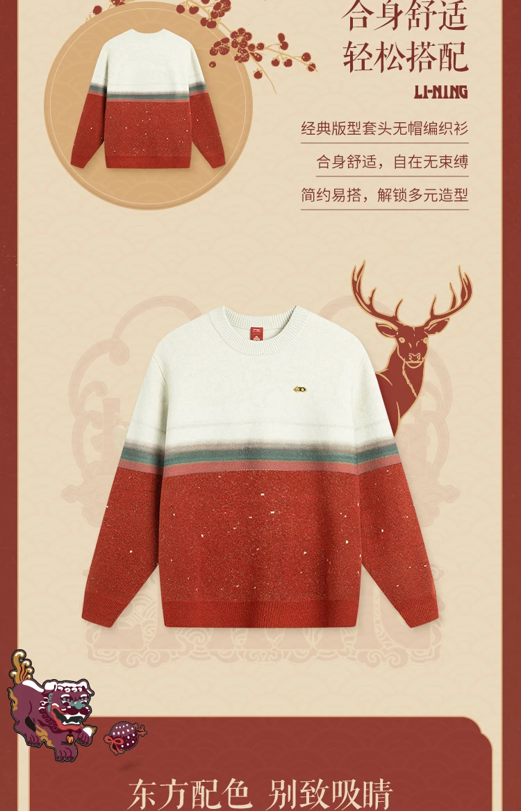【肖战同款】李宁中国文化系列故宫联名男女同款套头编织衫AMBV387