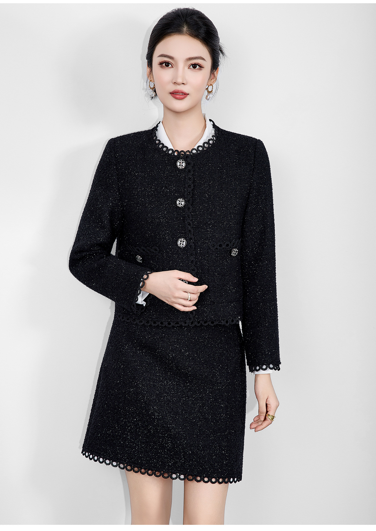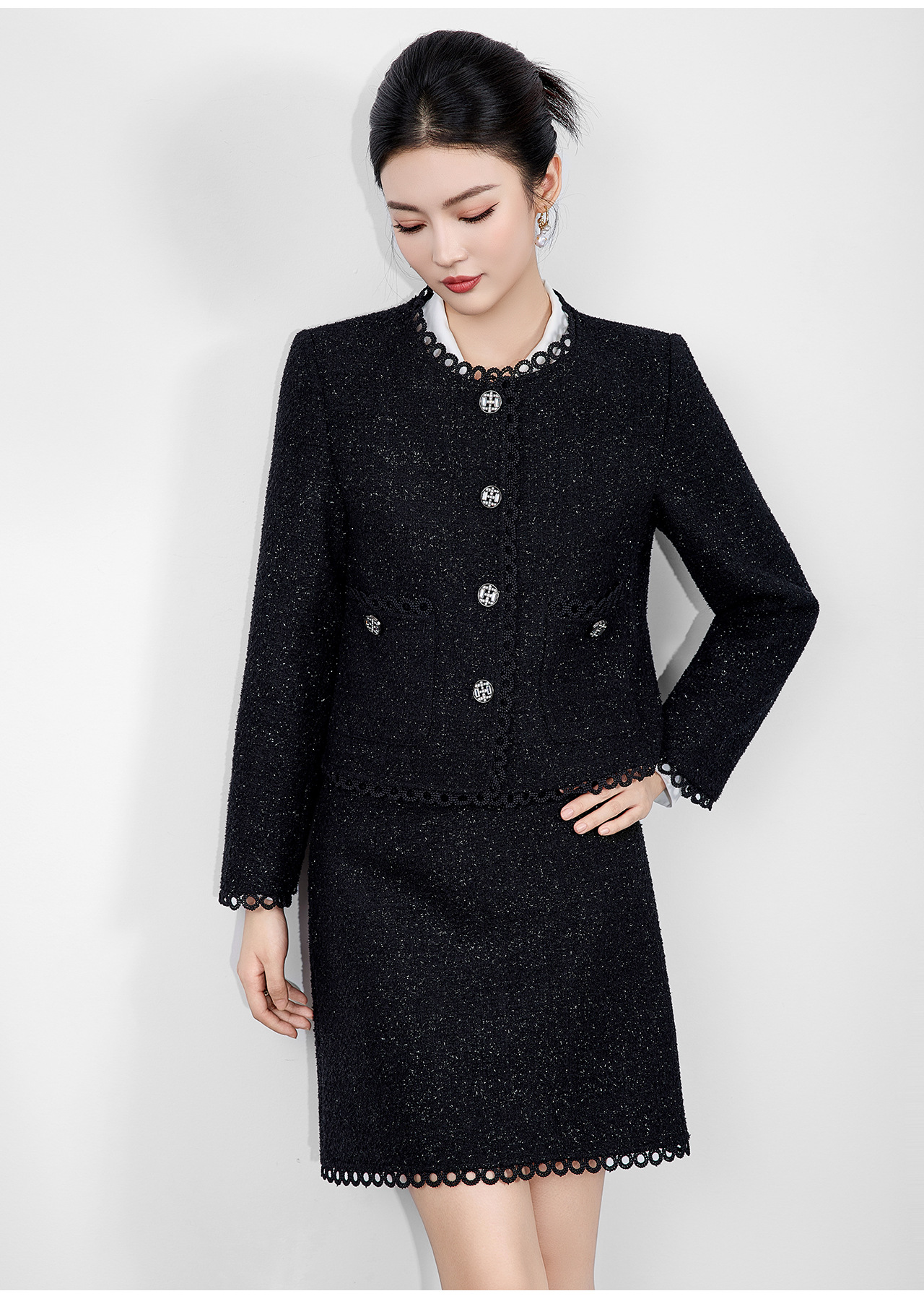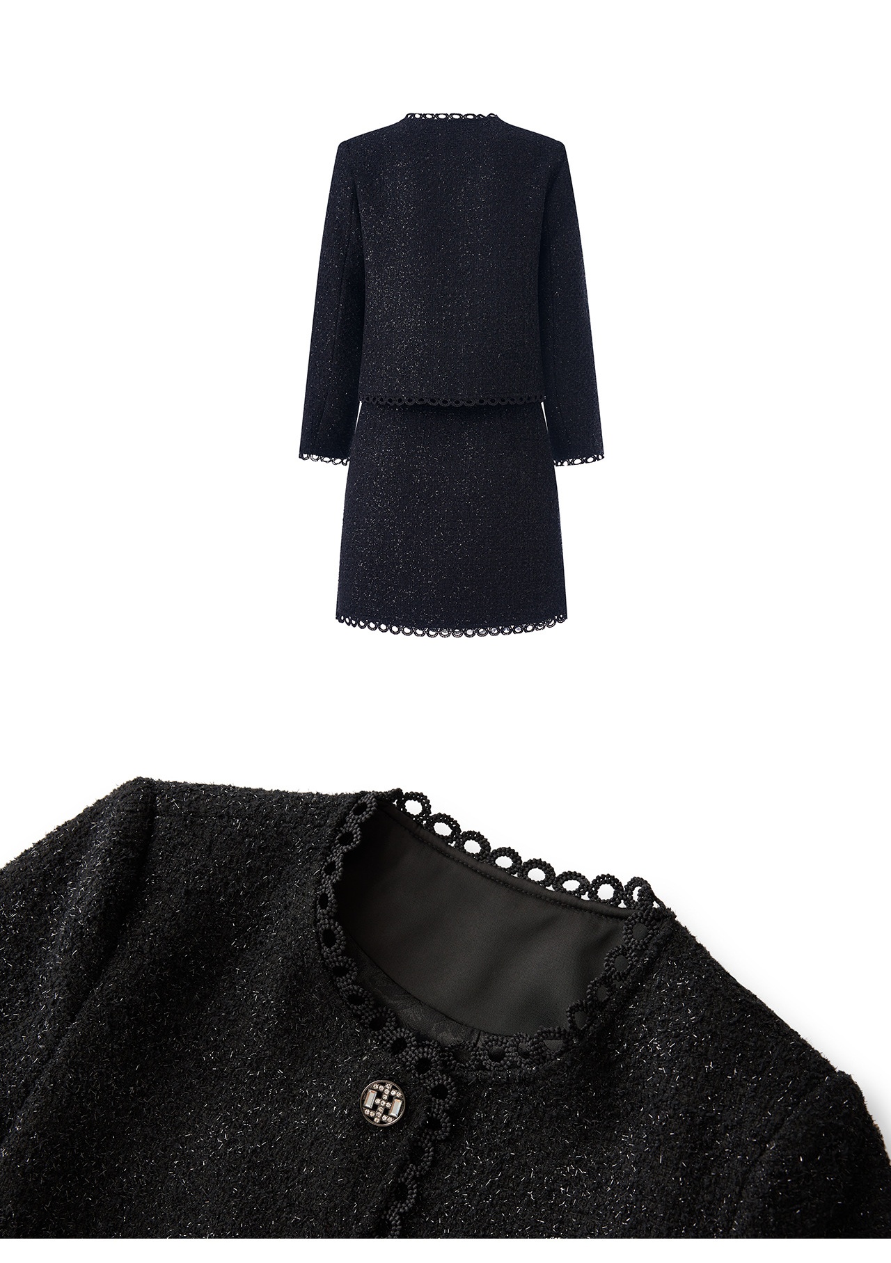 「高货wl」全新升级【铂金会员441/天猫599/差价158】(99331)洛诗琳2025秋冬亮丝编织粗花呢外套小香风半身裙两件套女