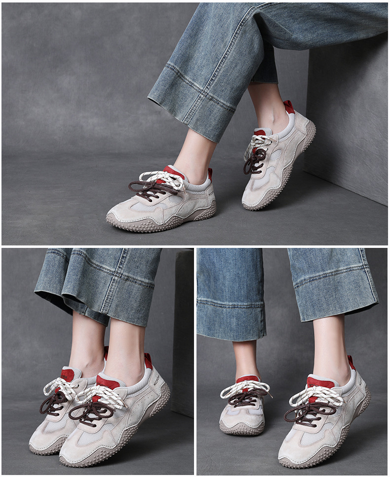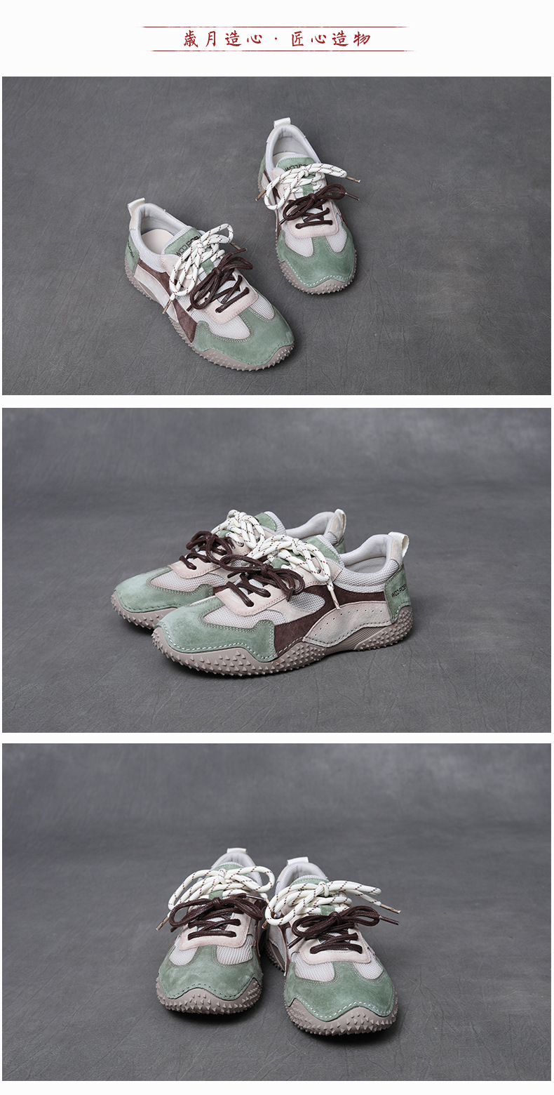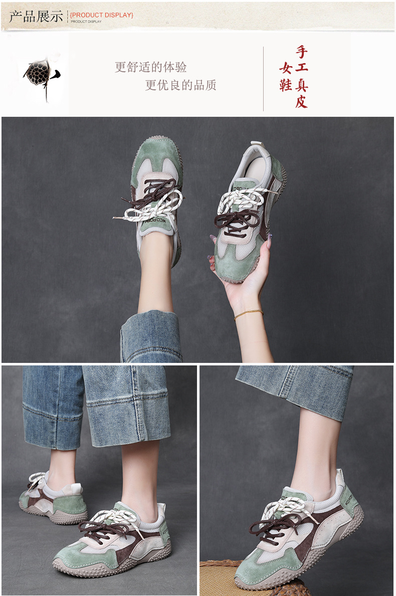JS12912025秋鞋新款真皮拼色系带休闲女鞋运动风软底鞋平底防滑单鞋