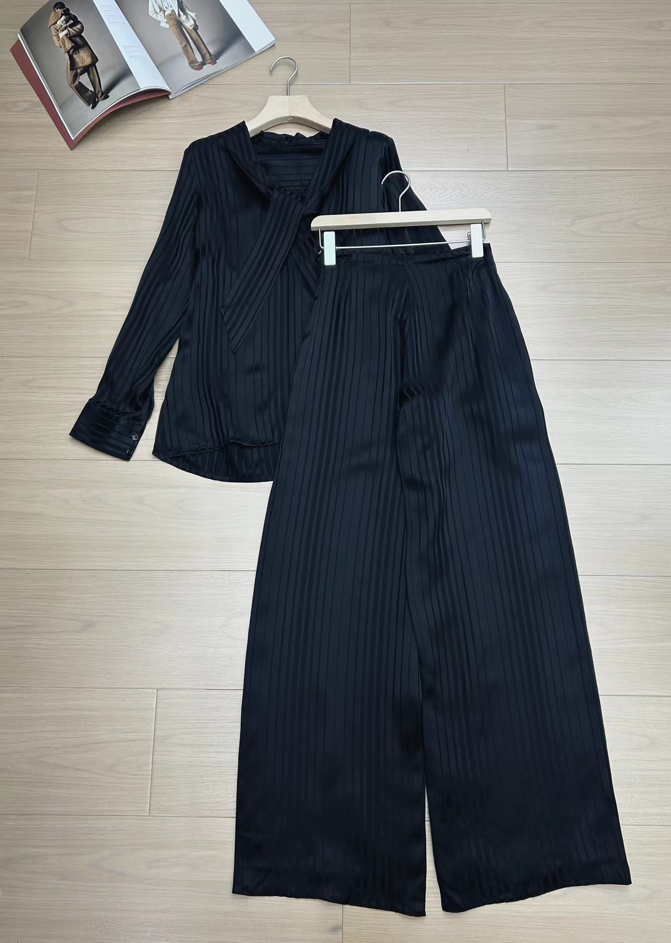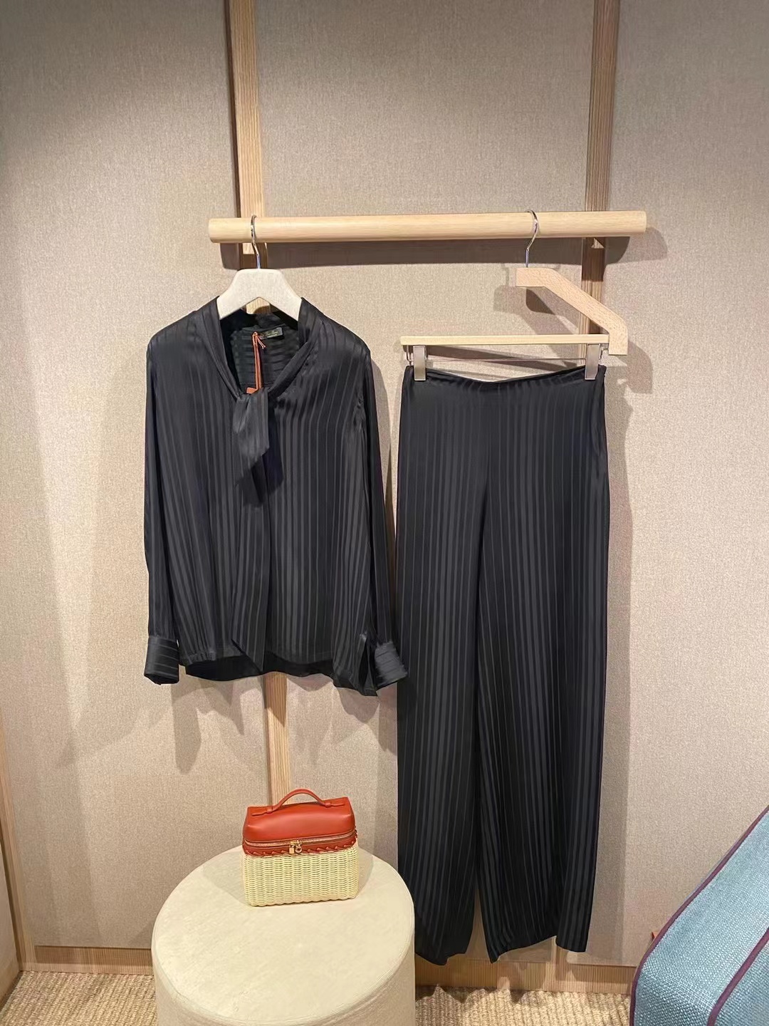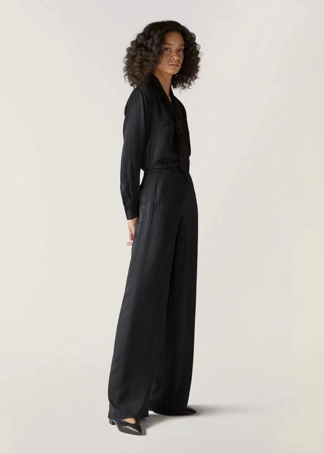 【à perles】LP 气场全开竖条纹纯真丝衬衣阔腿裤套装【特价清仓不退不换】