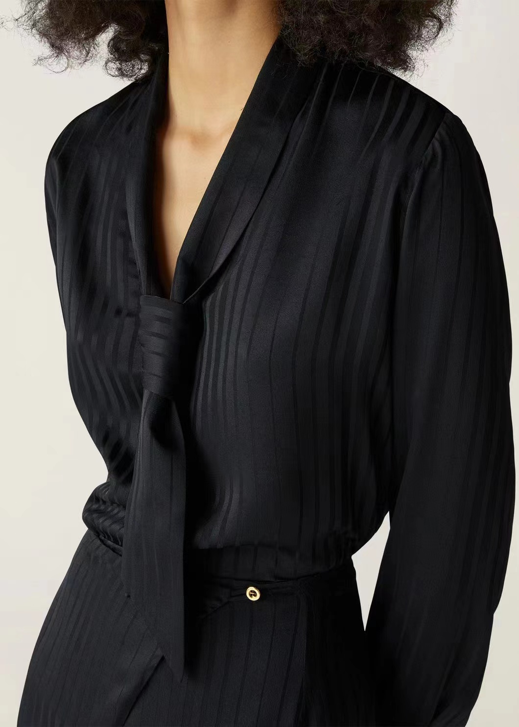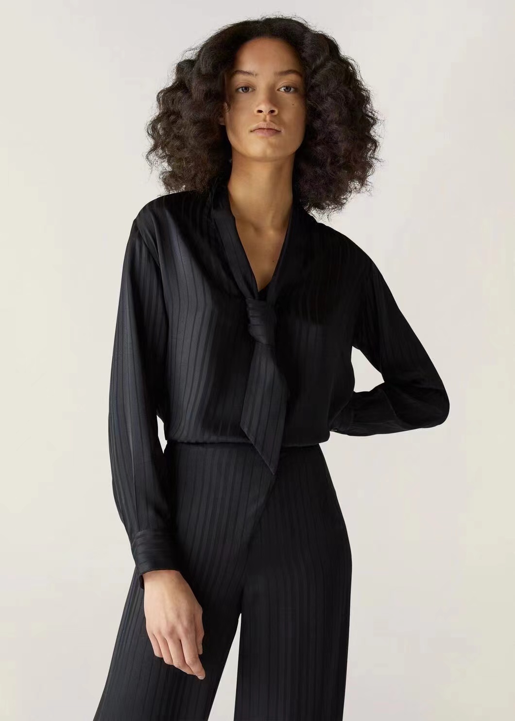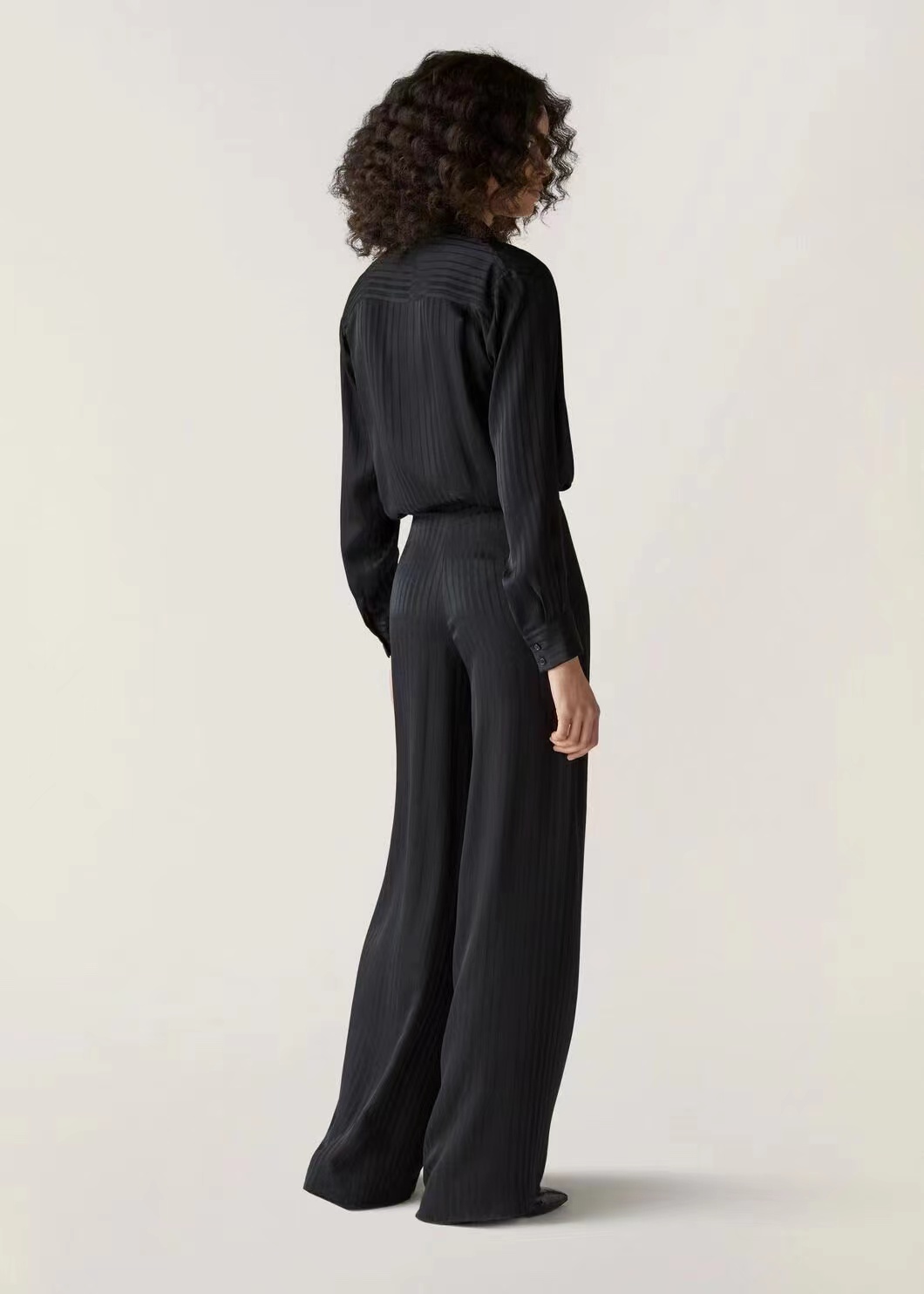 【à perles】LP 气场全开竖条纹纯真丝衬衣阔腿裤套装【特价清仓不退不换】