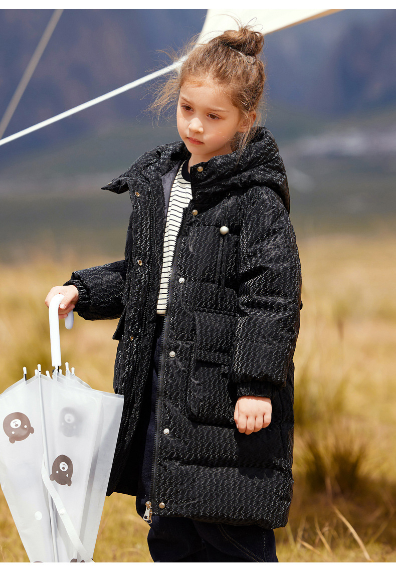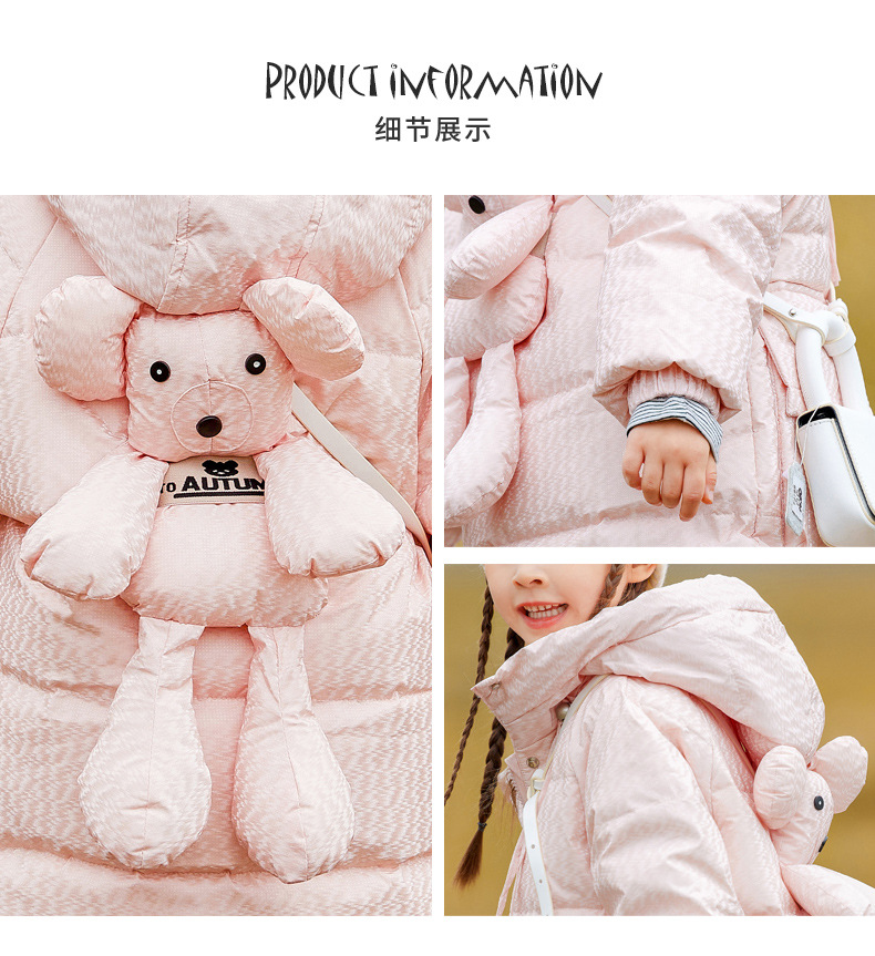 XBB-8805小猪吧啦女童羽绒服新款洋气中长款中大童小熊白鸭绒加厚秋冬外套