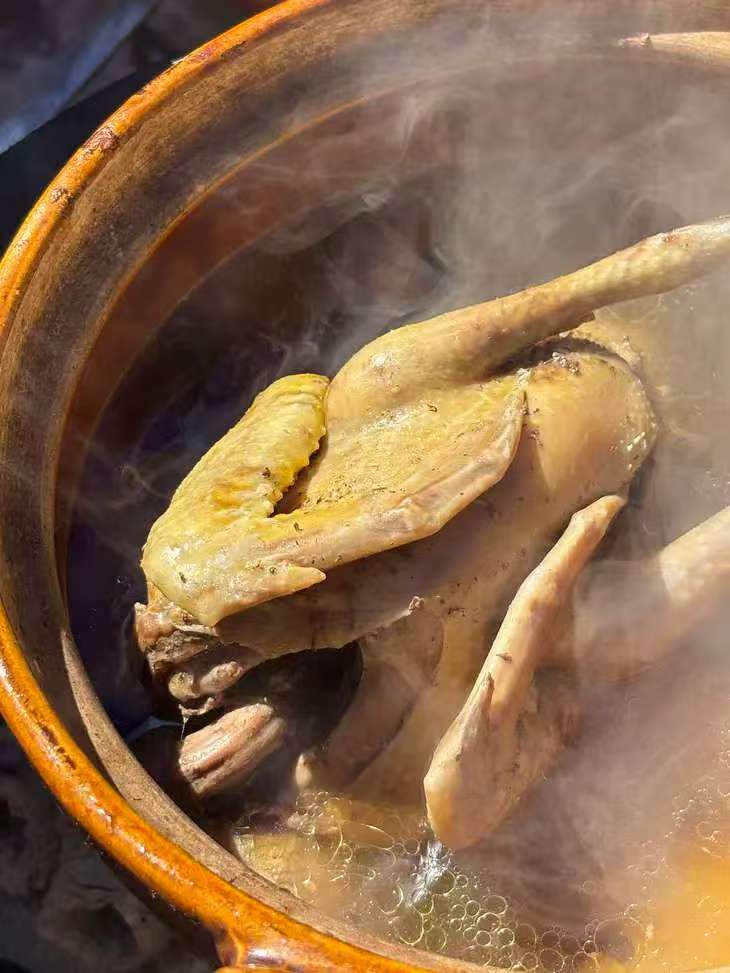 云南山里的这个环境大家也可以感受到,天蓝的透亮,山峰吹过来都是纯净的树林的草木味。 这些鸽子不是笼中鸟,而是每天迎着山风飞翔、啄食野果草籽的自由精灵🕊️ ,肉质紧实而香醇,炖出的汤金黄透亮,带着山野的灵气。