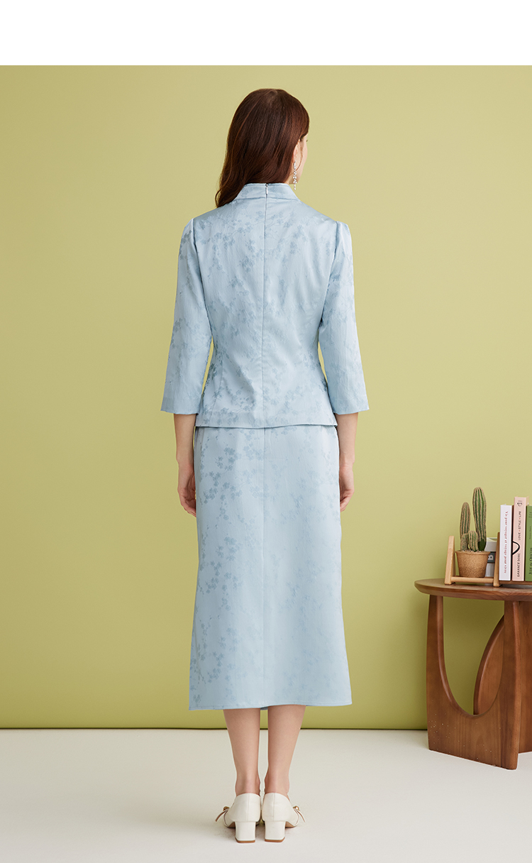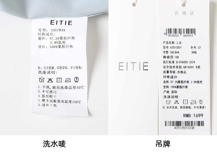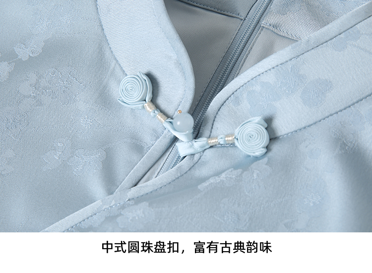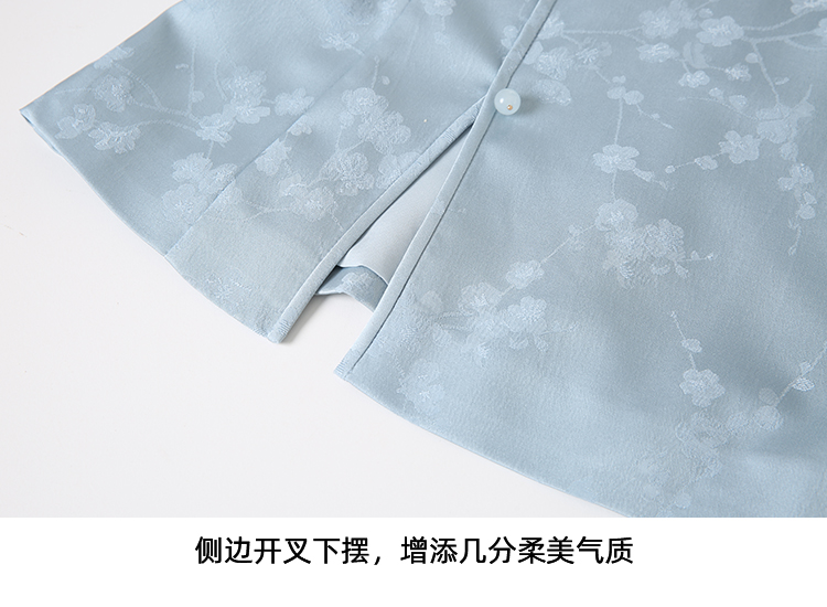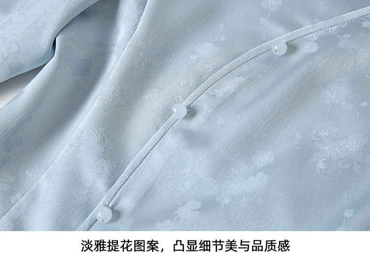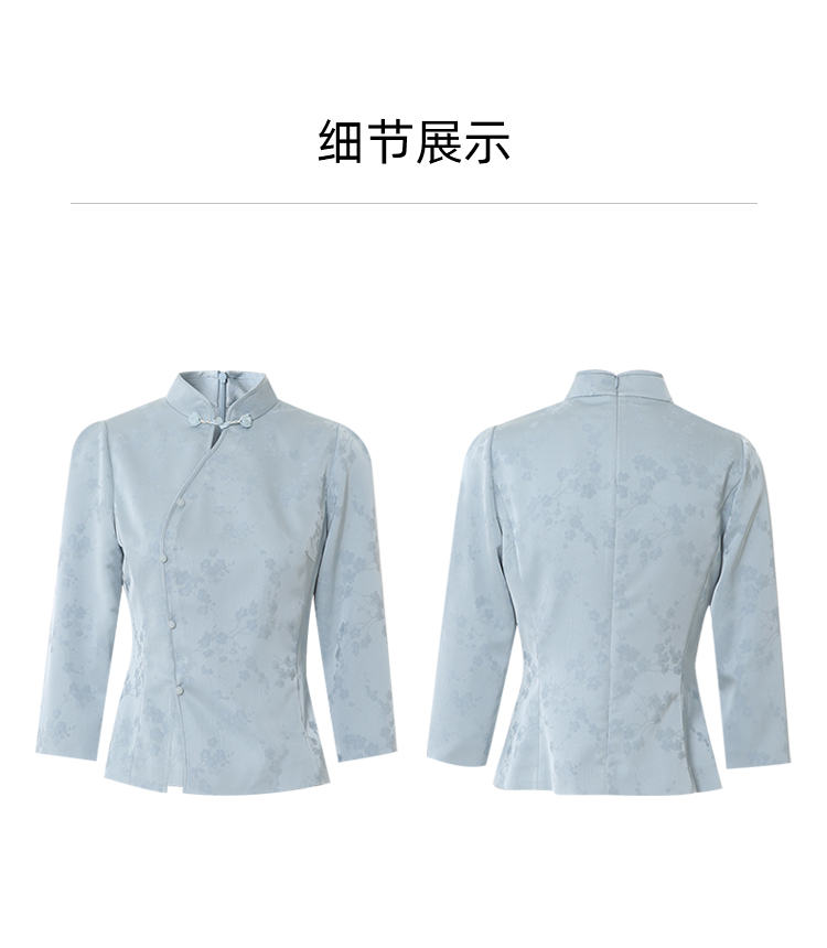 EITIE爱特爱新中式立领盘扣不对称收腰蓝色显瘦上衣2025春季新款A2513501