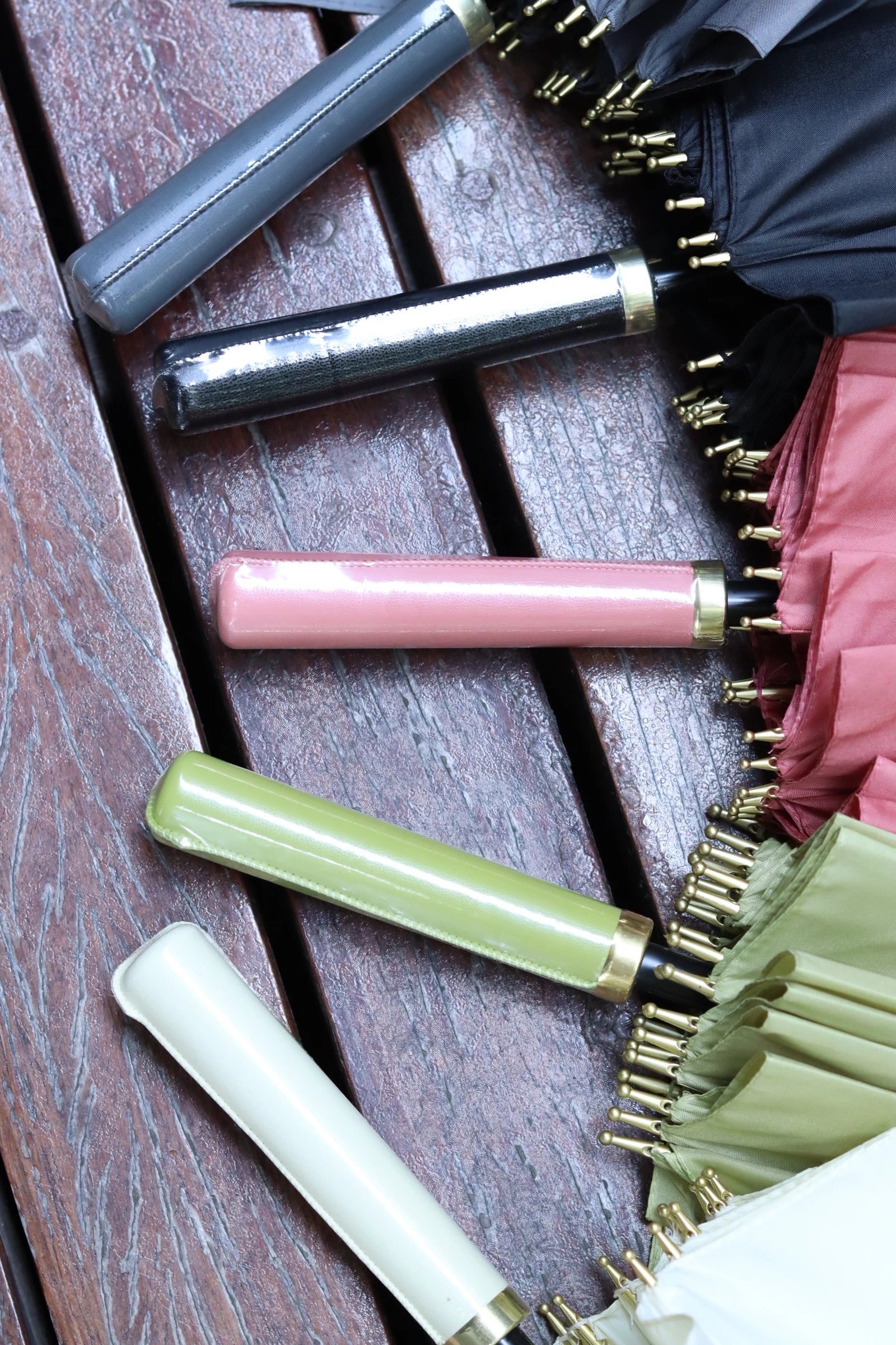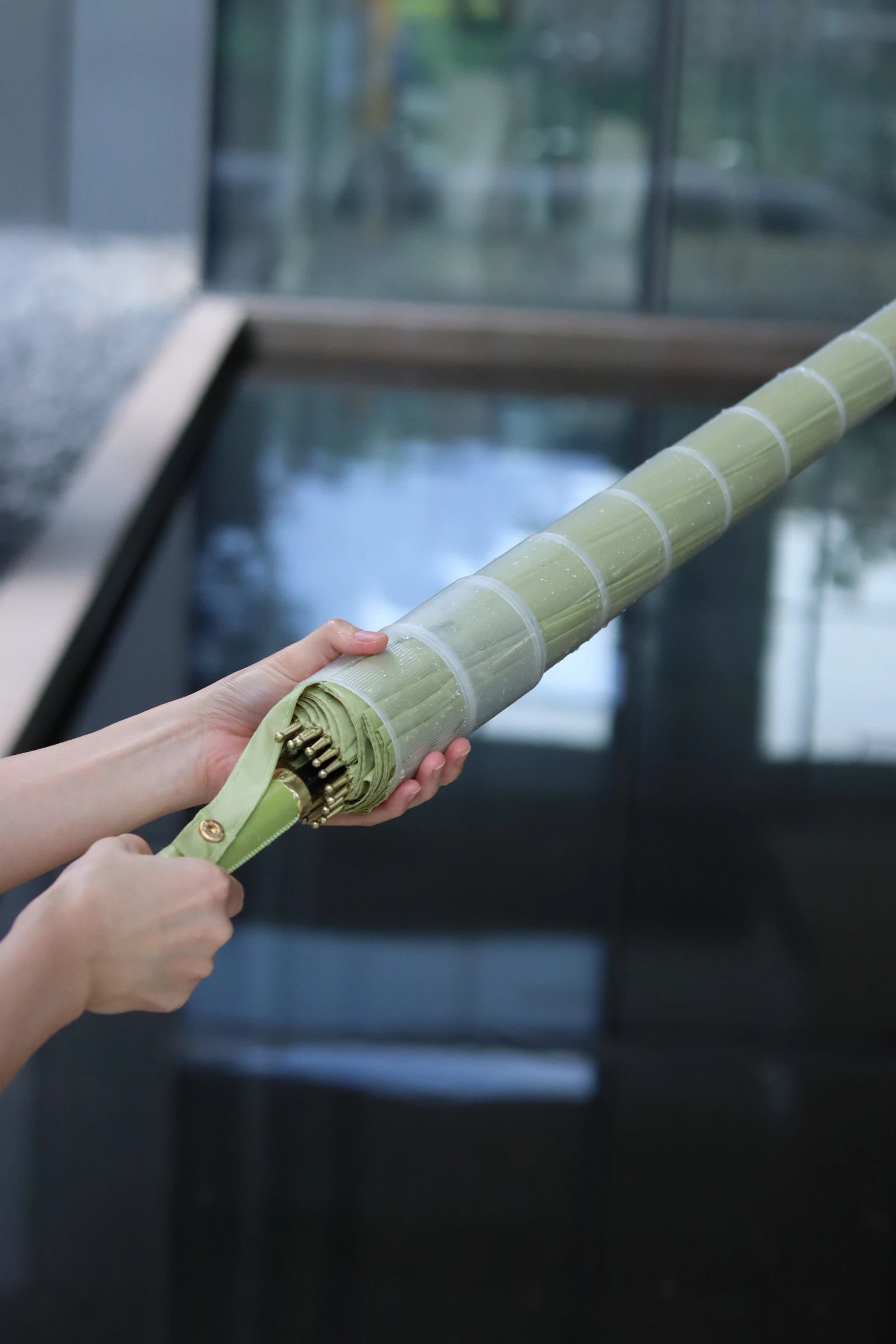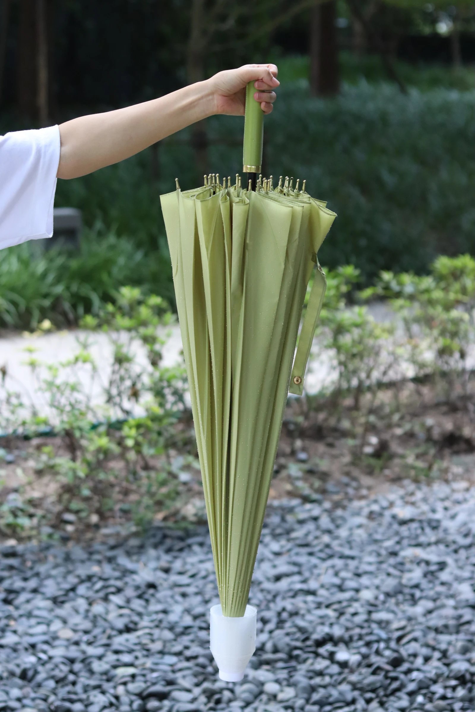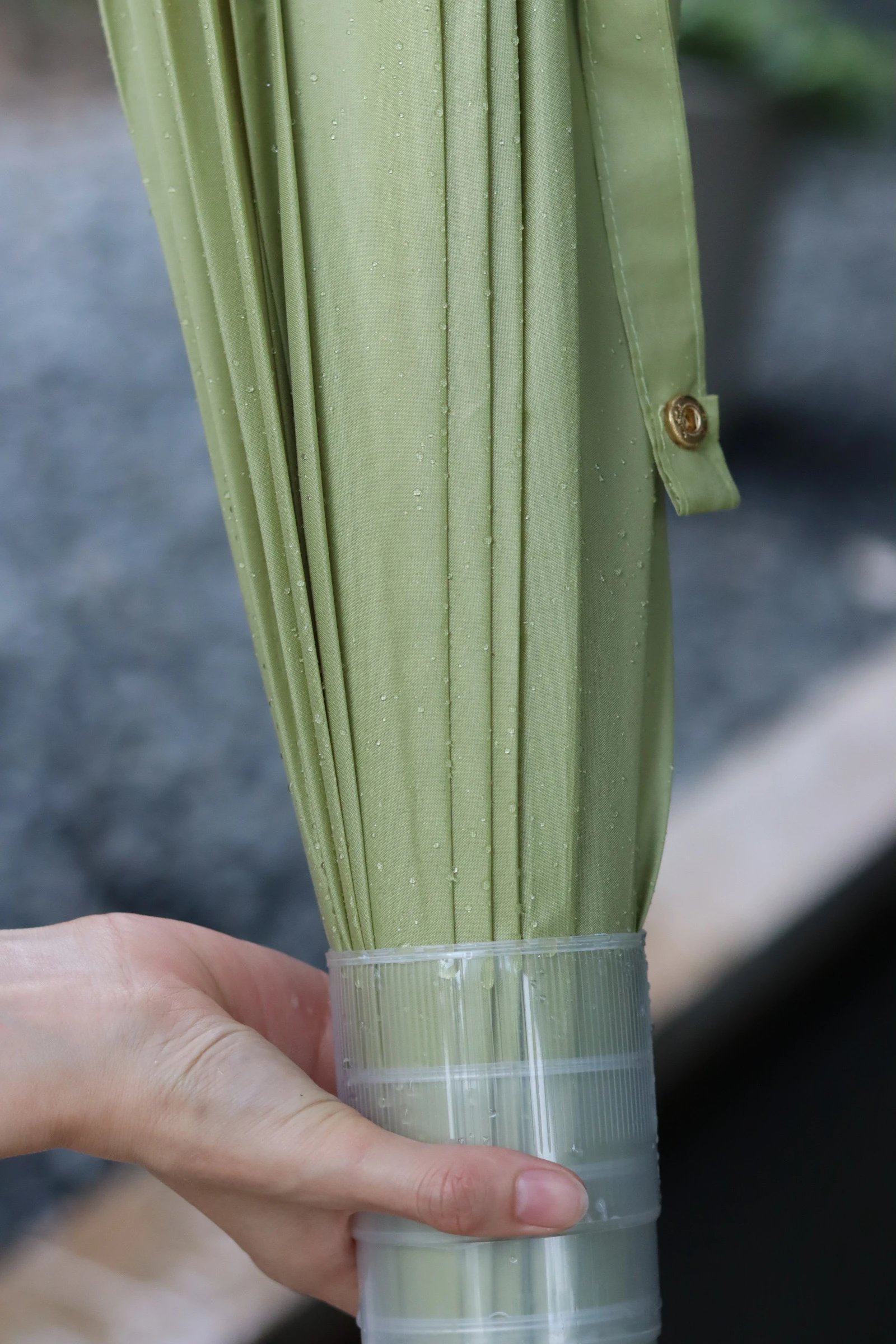 用完雨伞收起来,雨水自动流到伞套里