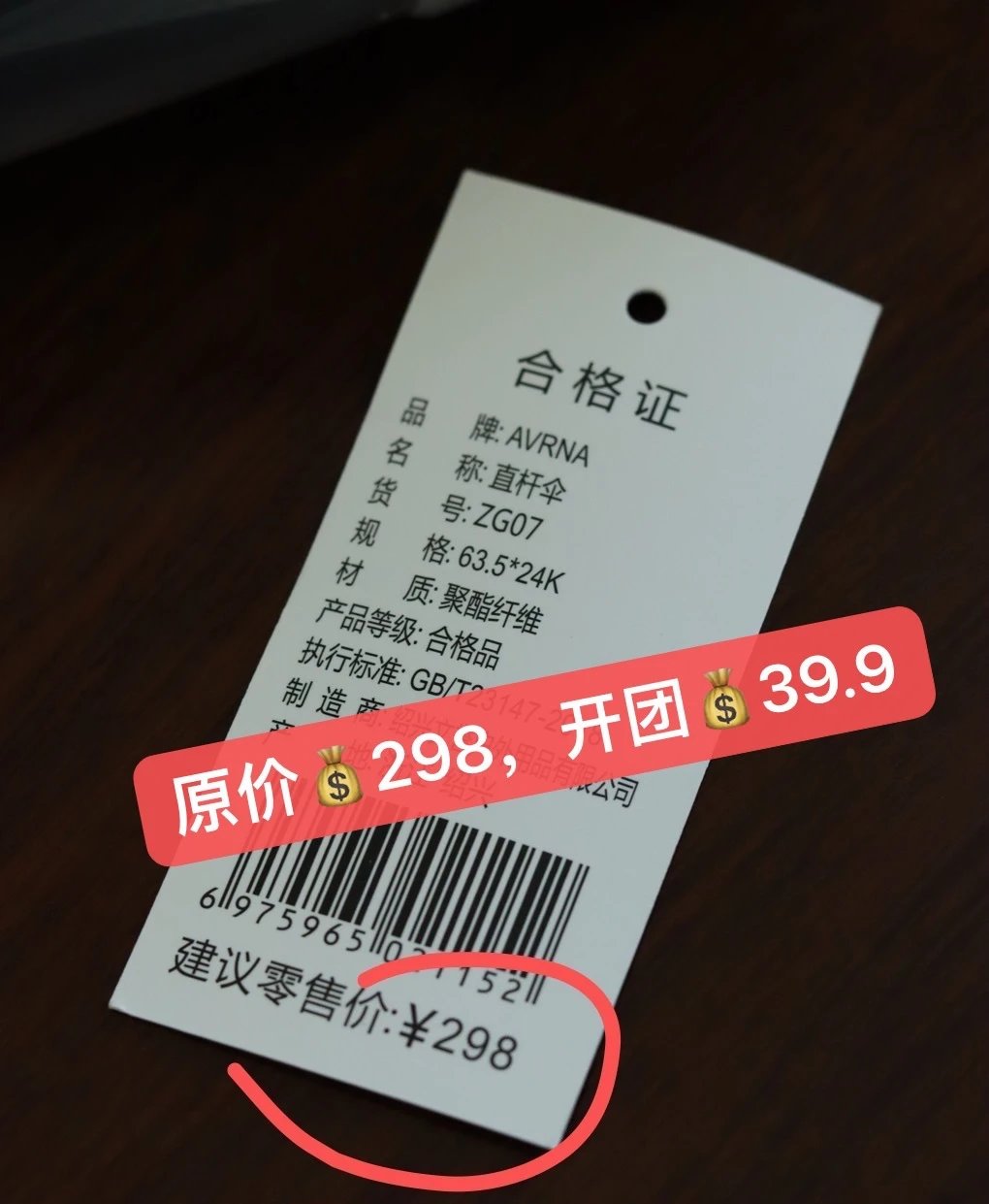 原价298/把,团购39.9/把