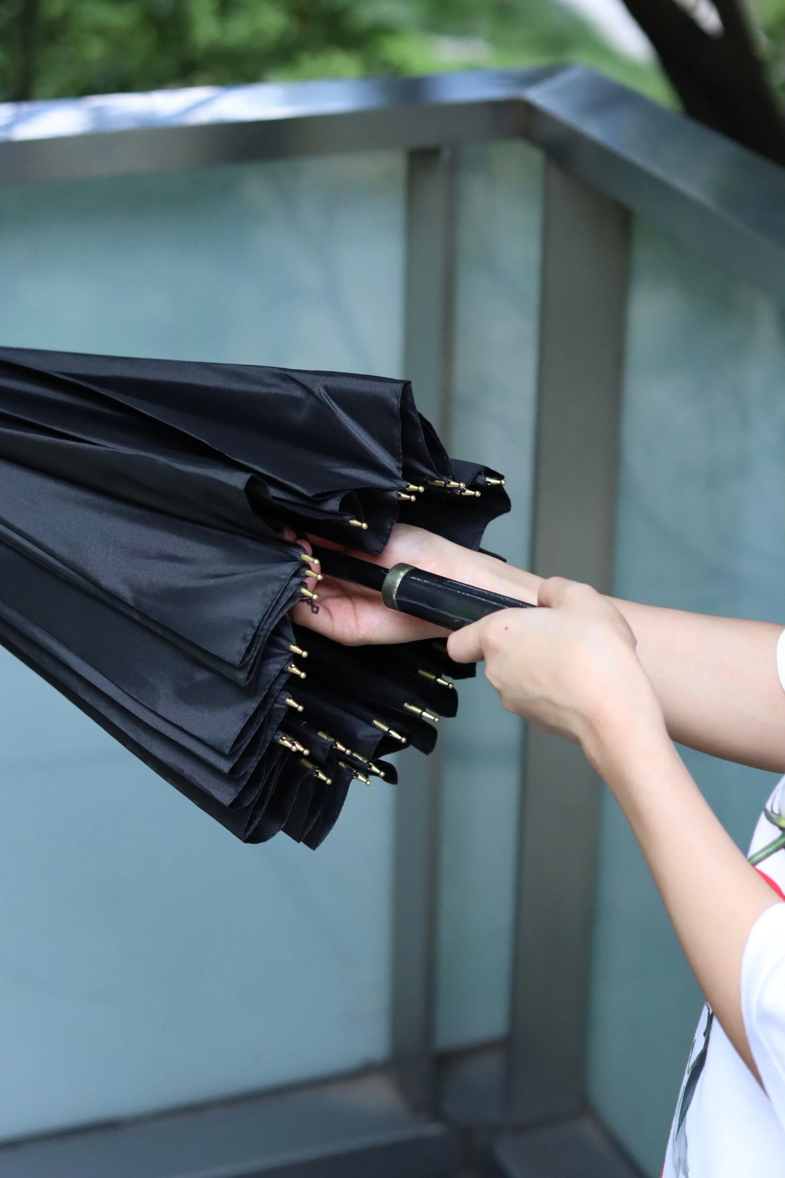 雨天用伞,一收一拉,巨方便
