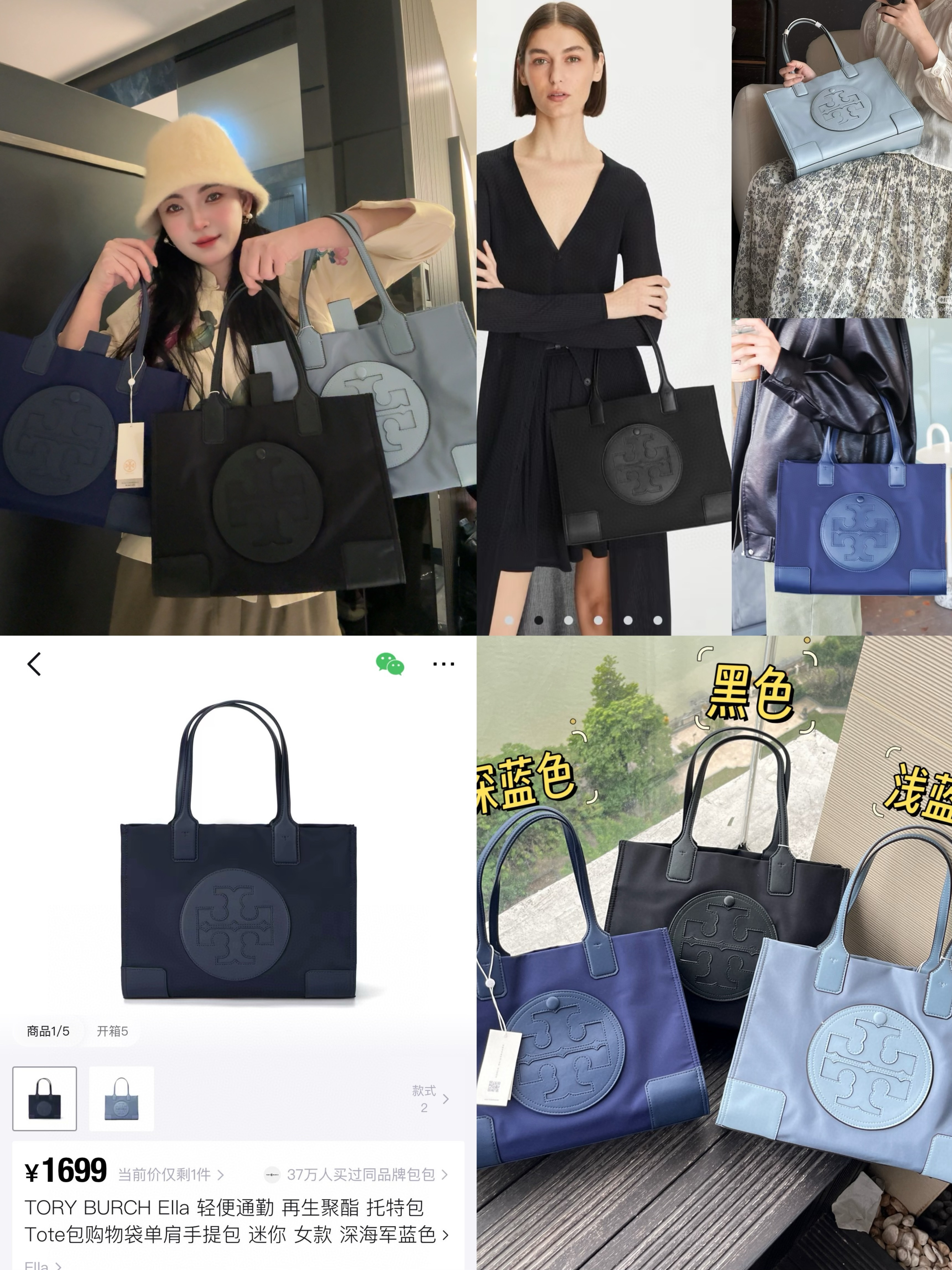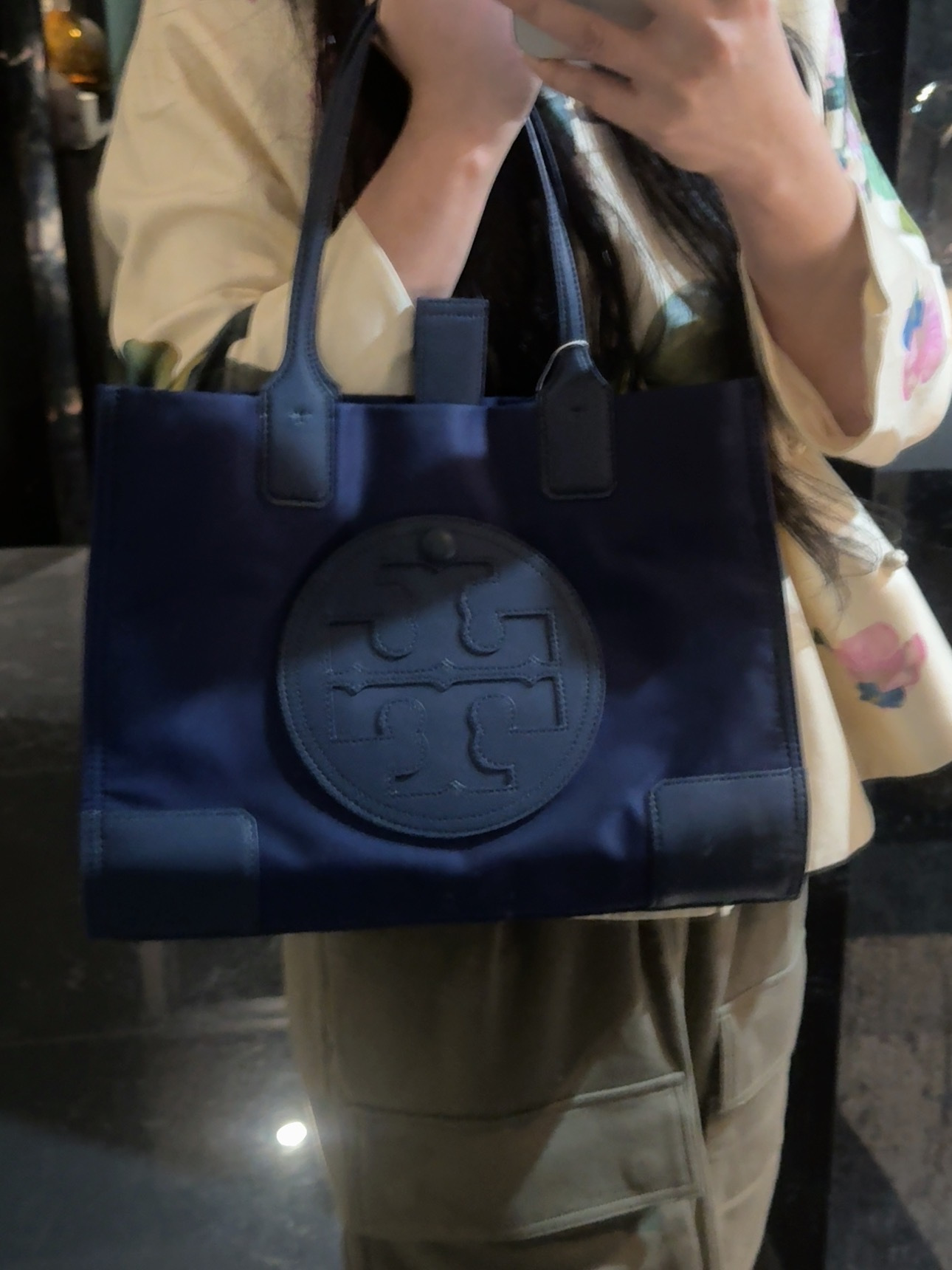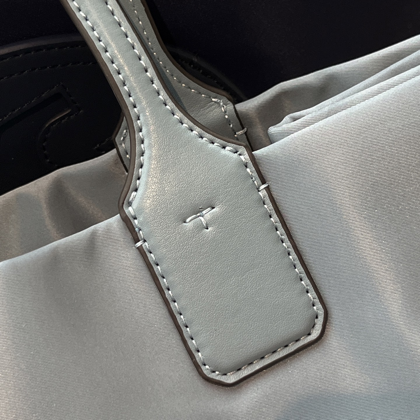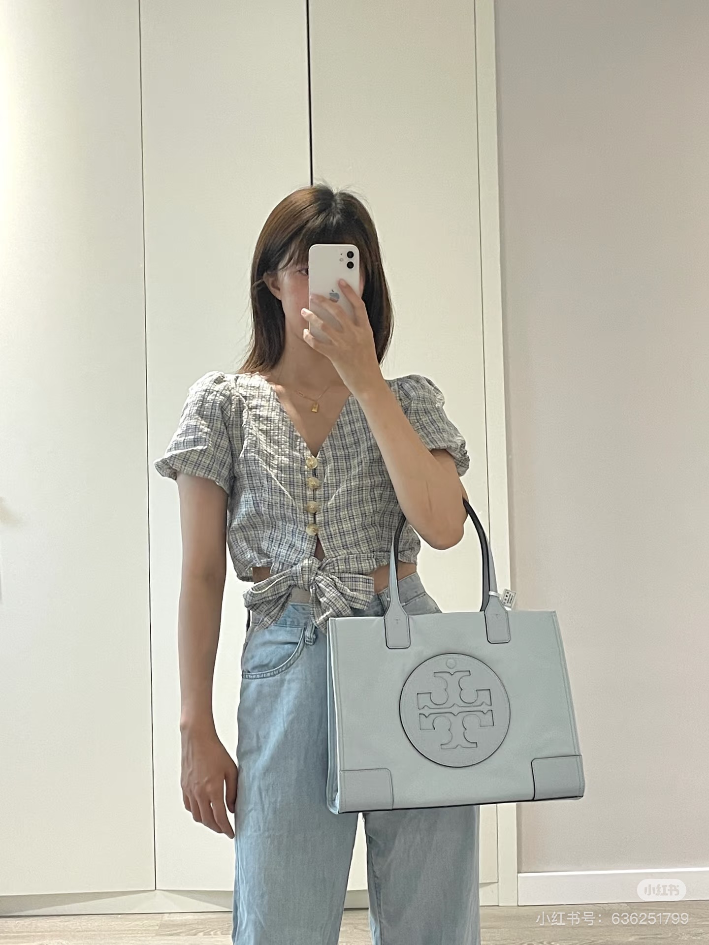 • 标志性元素:品牌辨识度极高的双T圆标Logo(压纹/镂空工艺,不同颜色款工艺略有区分),是轻奢感的核心来源; 包型:方正托特包型+迷你尺寸,既保留了托特包的“能装属性”,又避免了大托特的笨重感;。