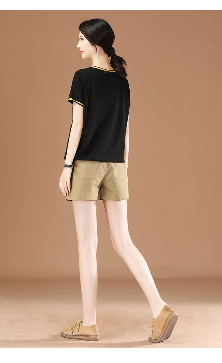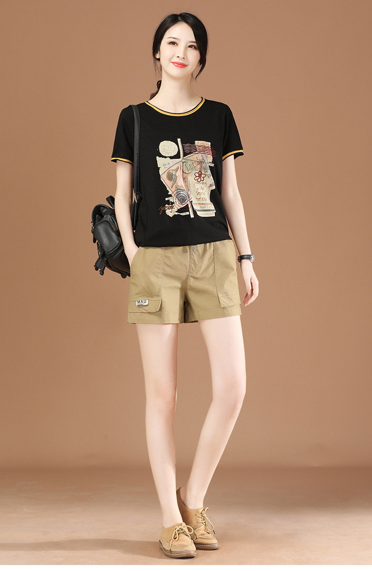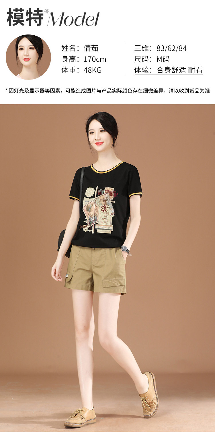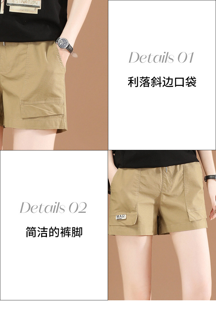 丁摩 松紧腰休闲工装短裤子女夏季2021年新款宽松直筒热辣裤子薄PT1537-WX313 商品图4