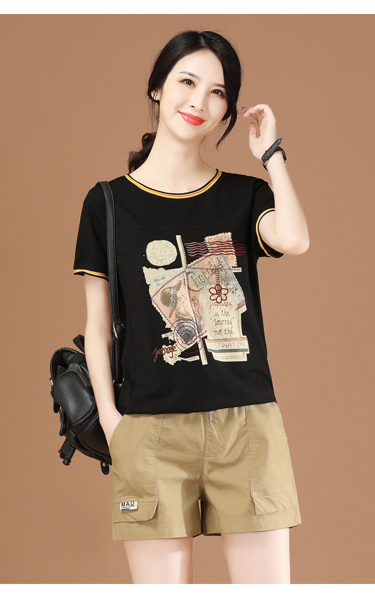 丁摩 松紧腰休闲工装短裤子女夏季2021年新款宽松直筒热辣裤子薄PT1537-WX313 商品图3