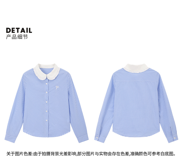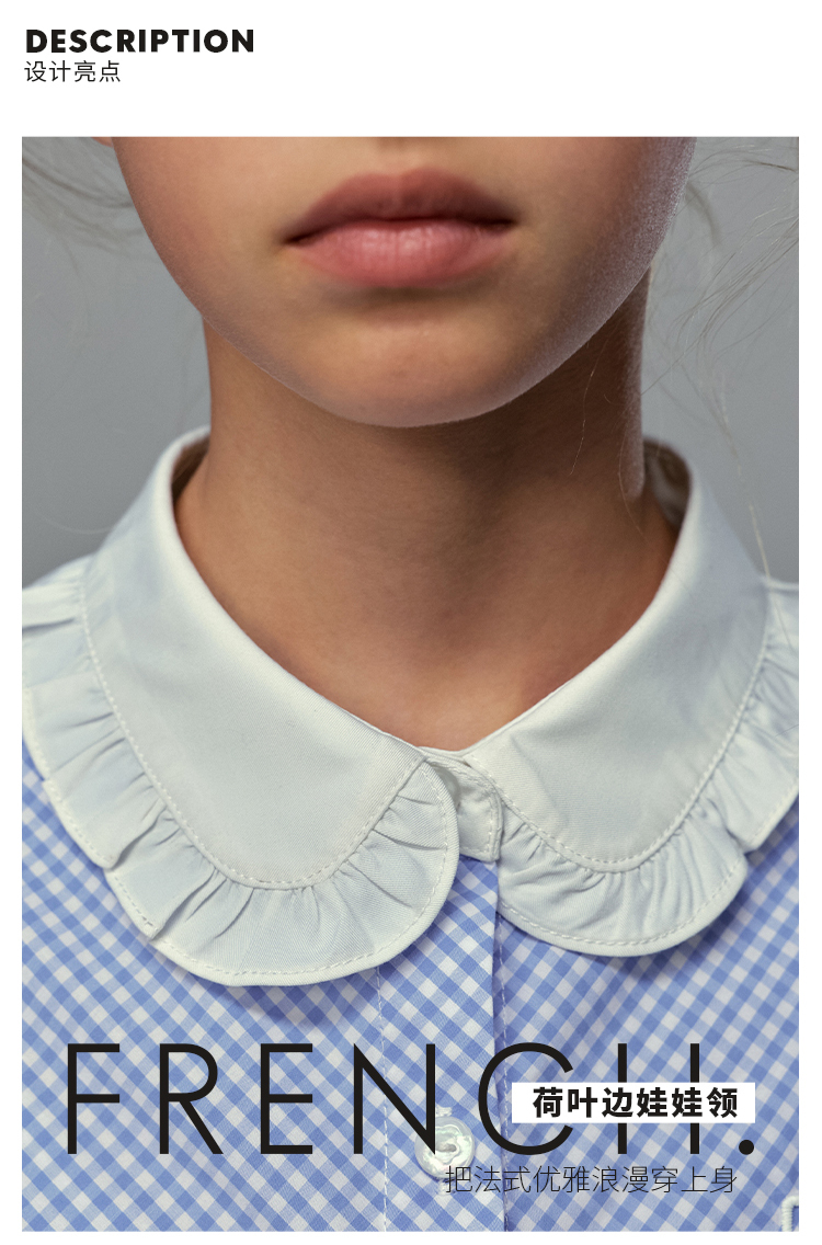 💕春3童装法式荷叶领蓝白格纹长袖衬衫 商品图2