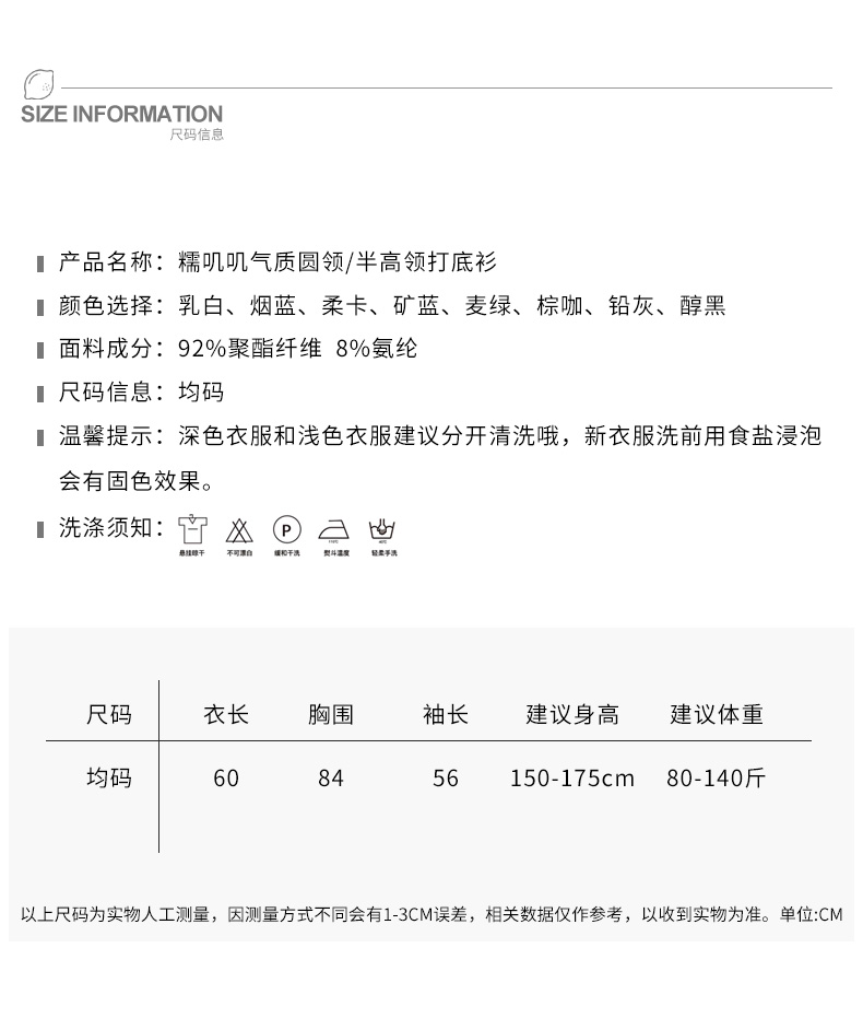 【2件装】糯叽叽气质圆领/半高领打底衫