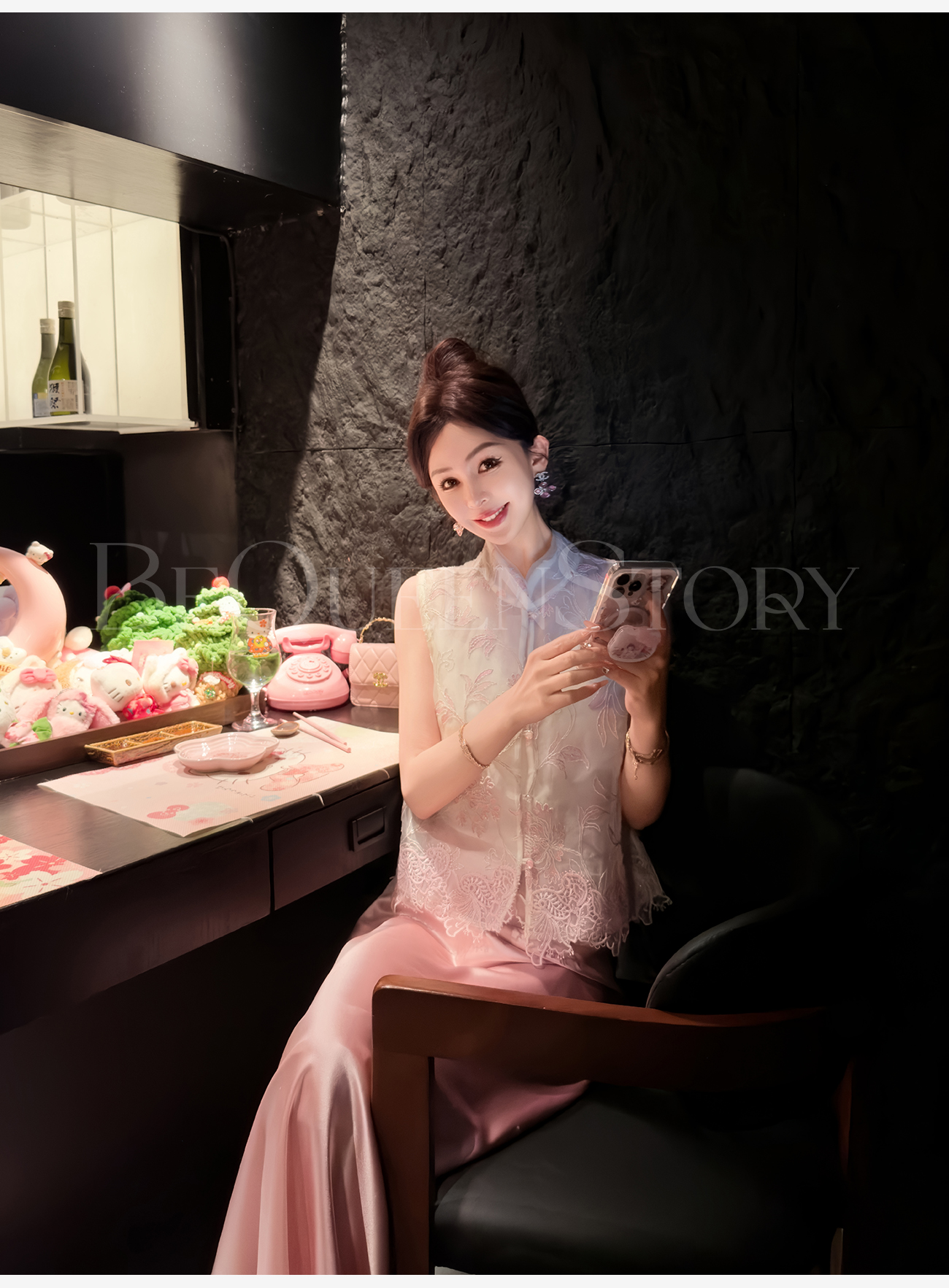 【大货捡漏,不退不换】 【桃枝花酿】时尚百搭100桑蚕丝重工精致珠片绣花马夹轻柔