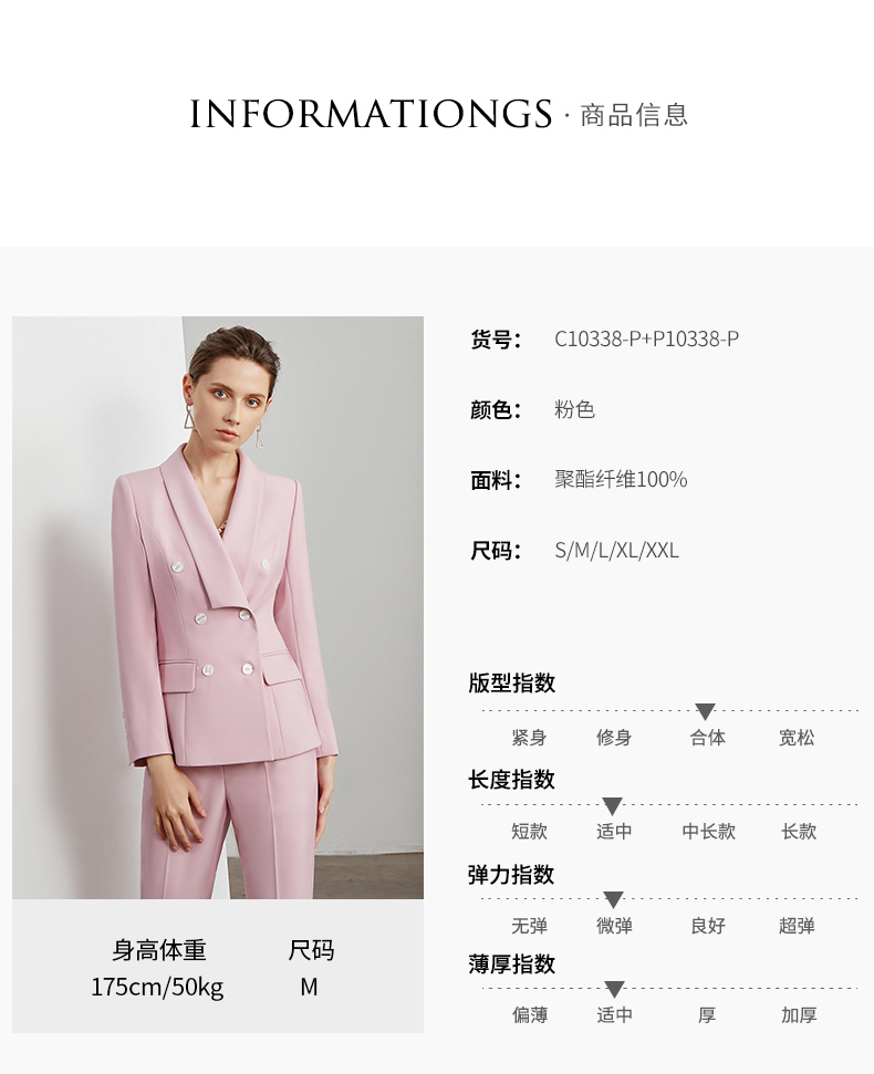 IWY/粉色时尚商务西装套装小脚裤 C10338-P+P10338-P