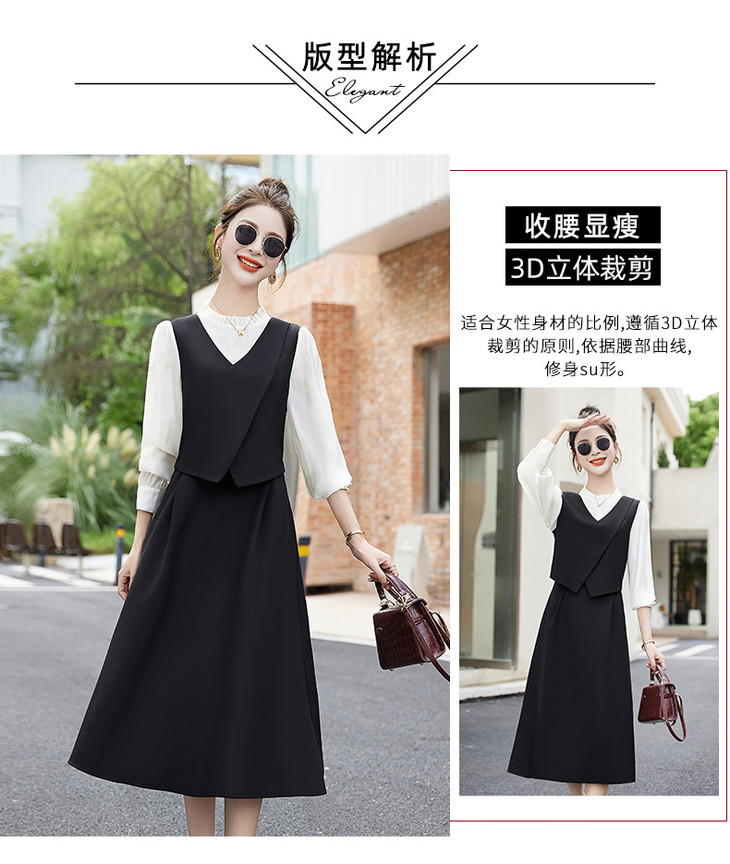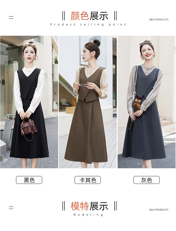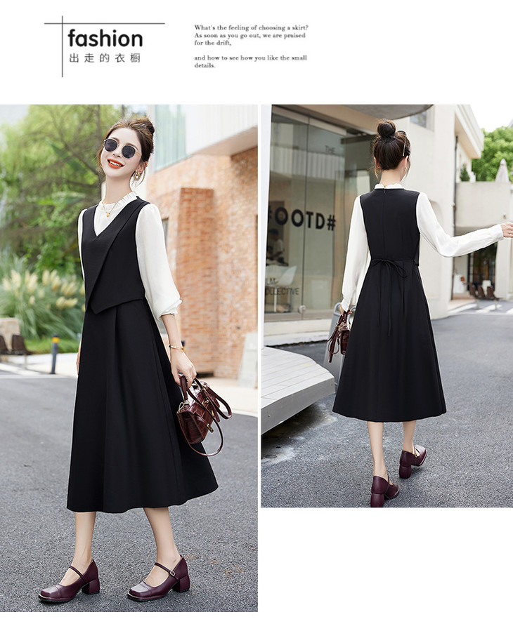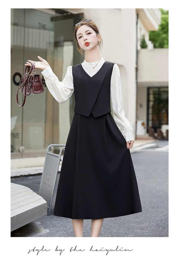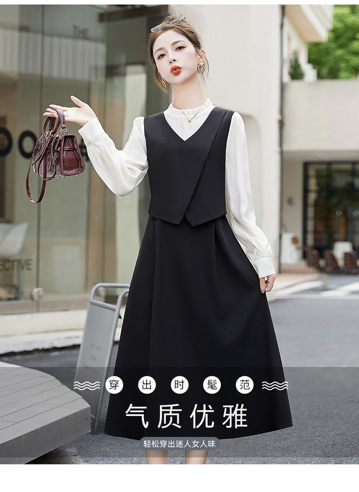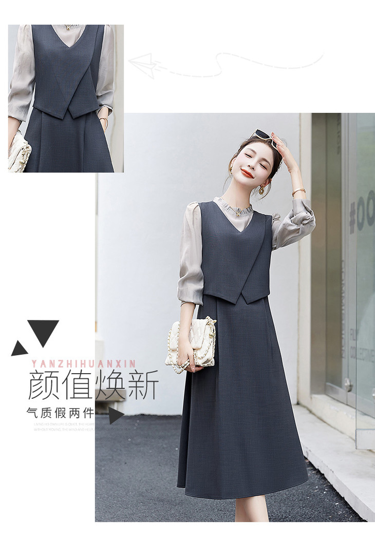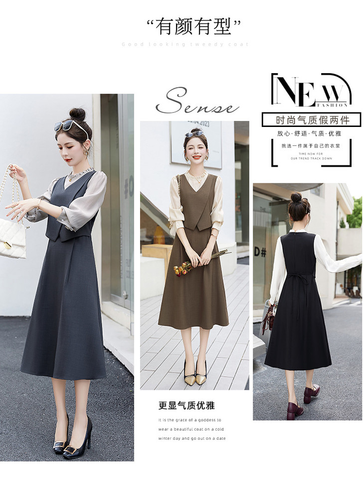 2024秋季新款圆领小个子减龄显长裙时尚拼接假两件连衣裙HR- HANYUSHE2366