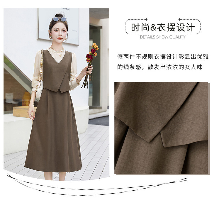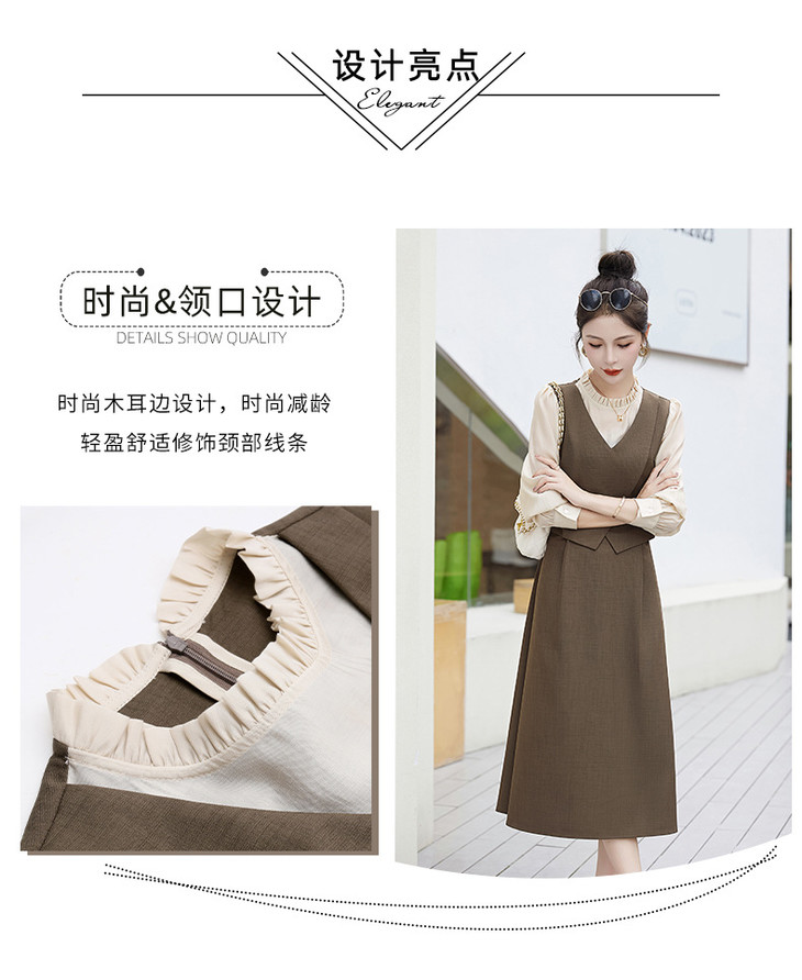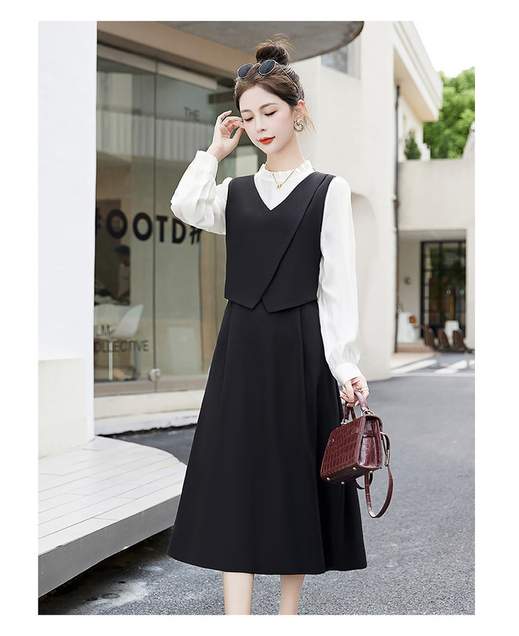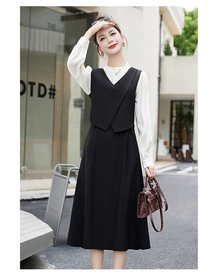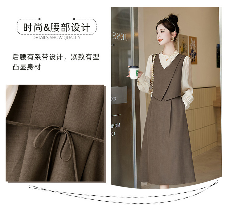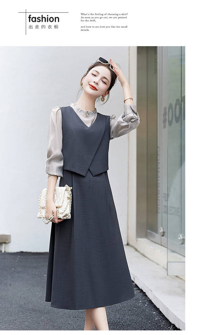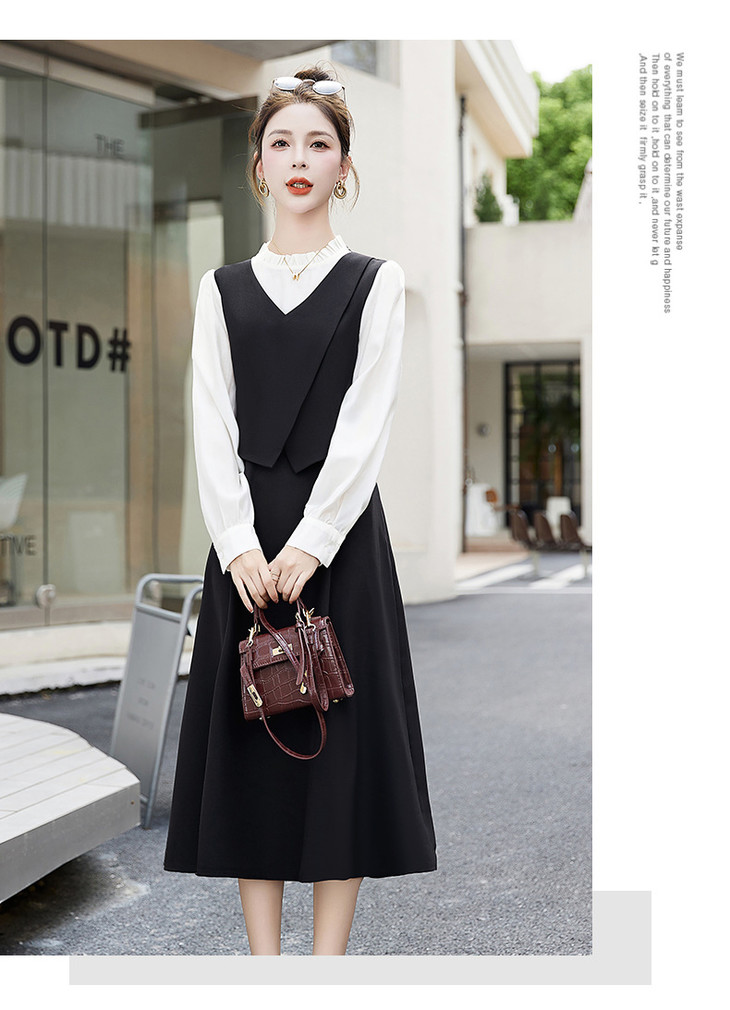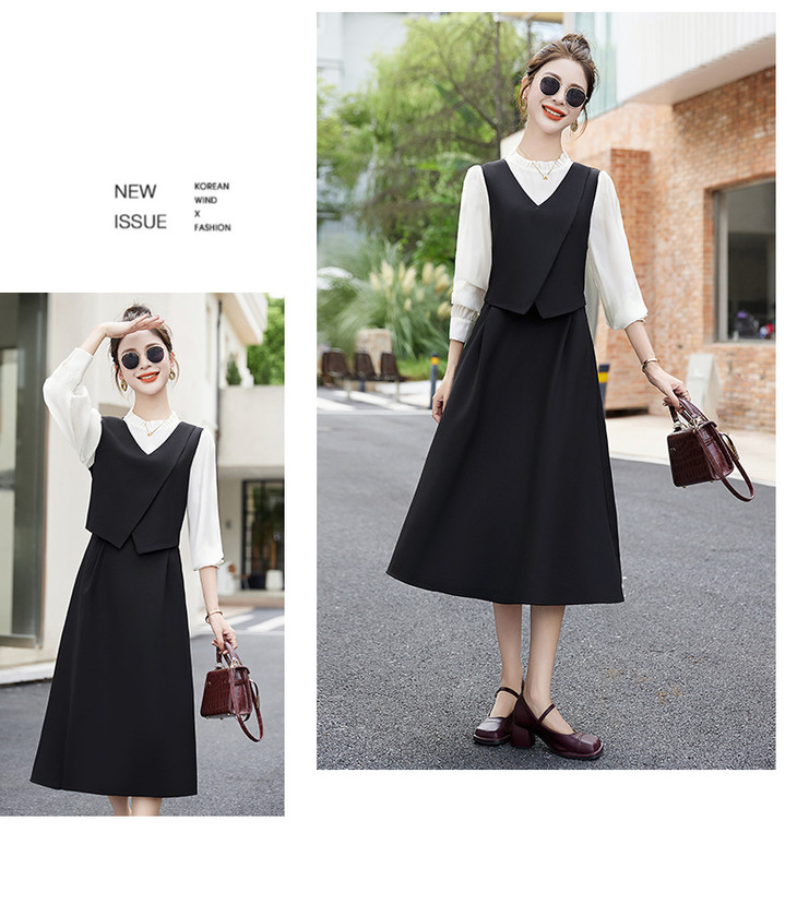 2024秋季新款圆领小个子减龄显长裙时尚拼接假两件连衣裙HR- HANYUSHE2366