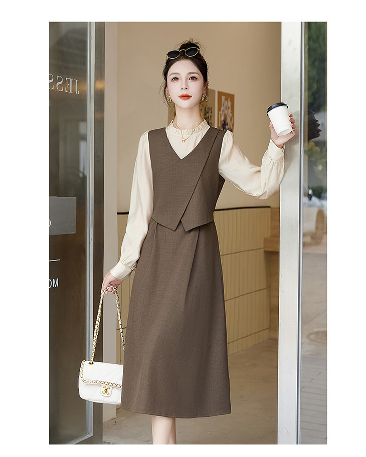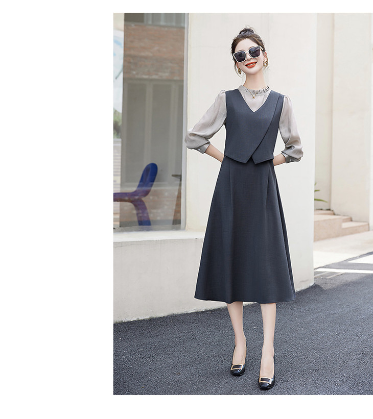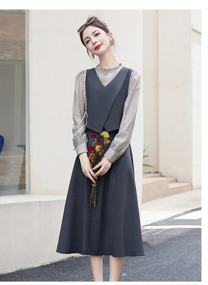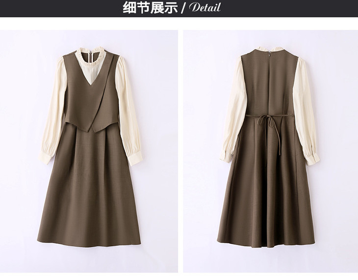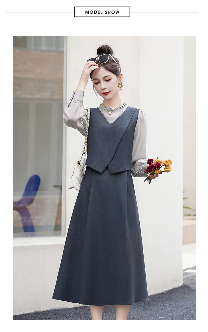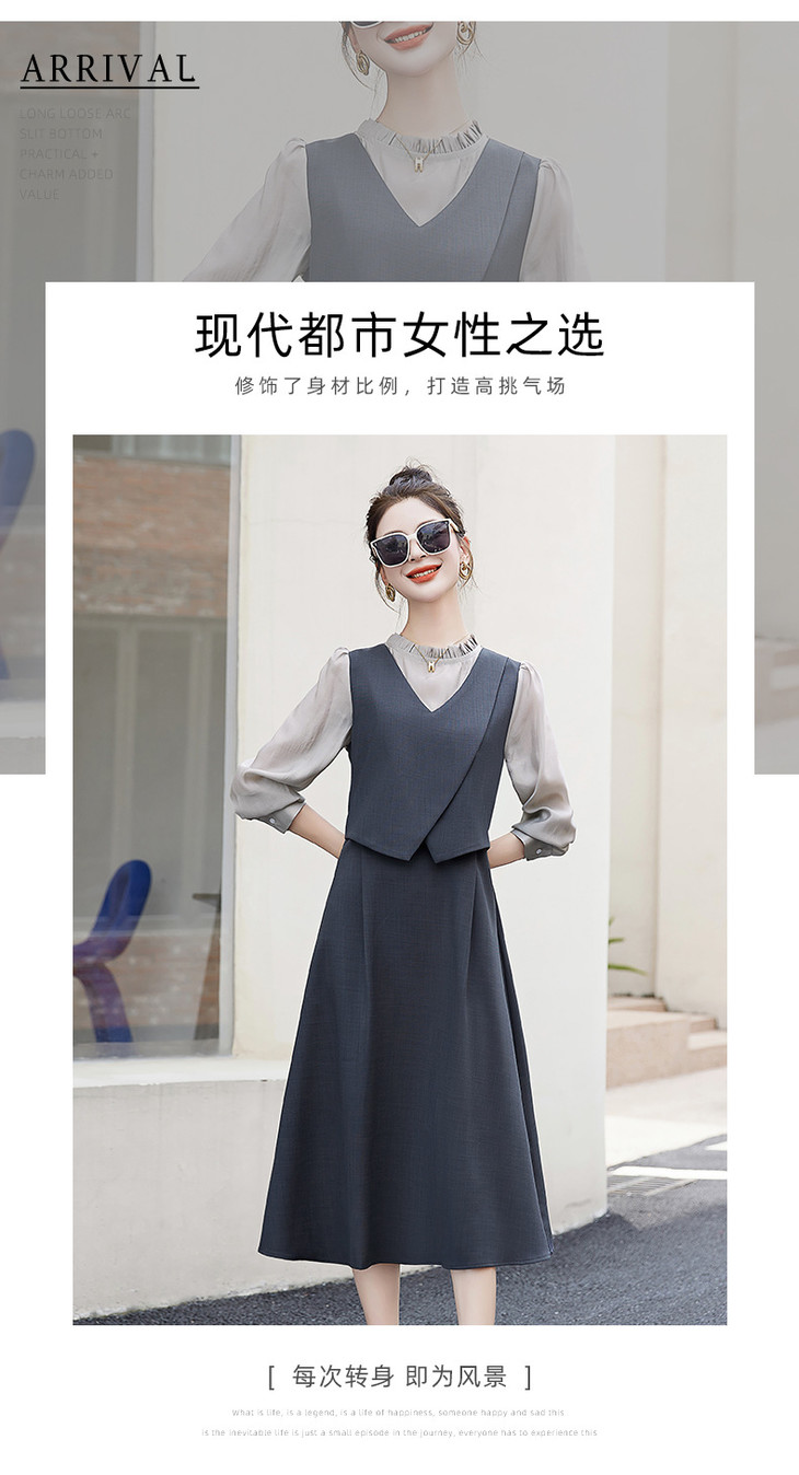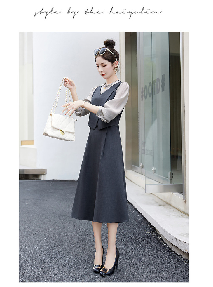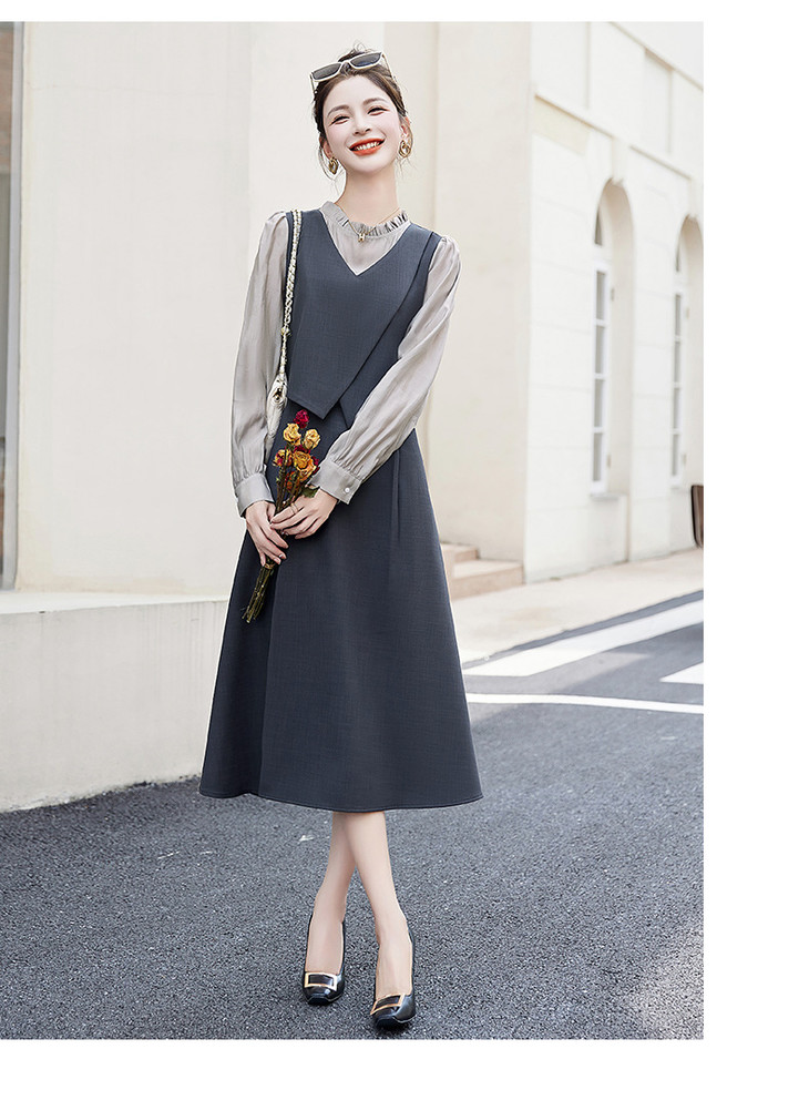 2024秋季新款圆领小个子减龄显长裙时尚拼接假两件连衣裙HR- HANYUSHE2366