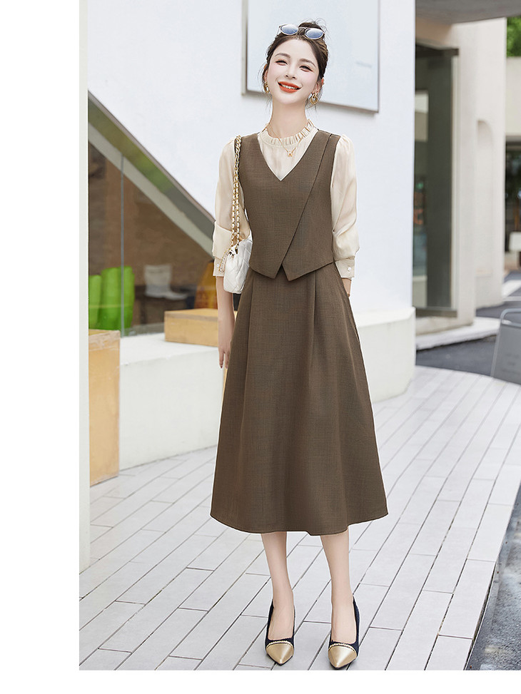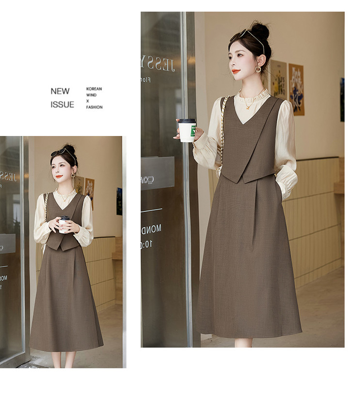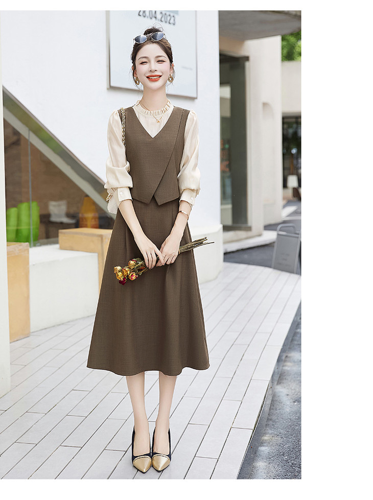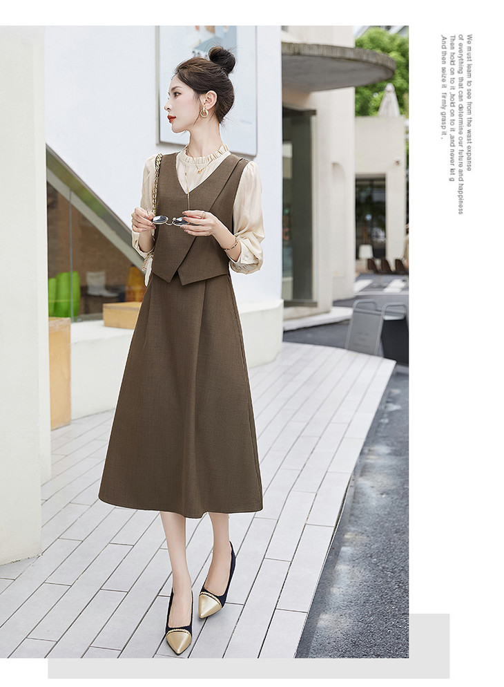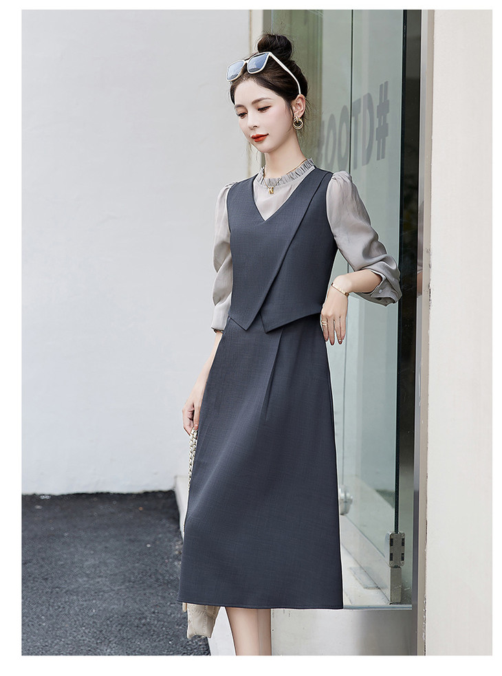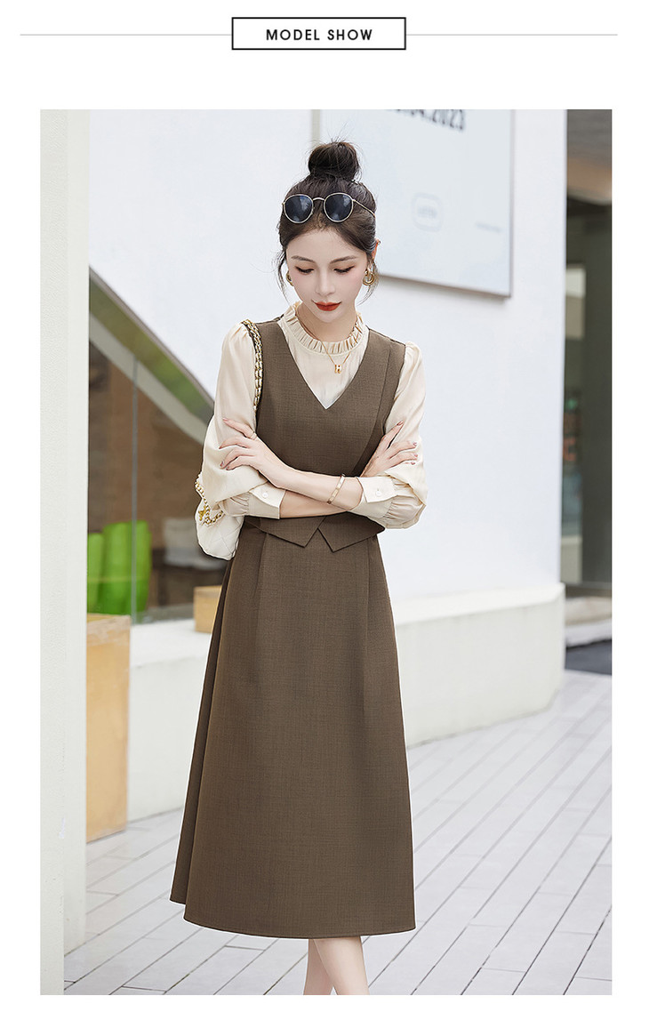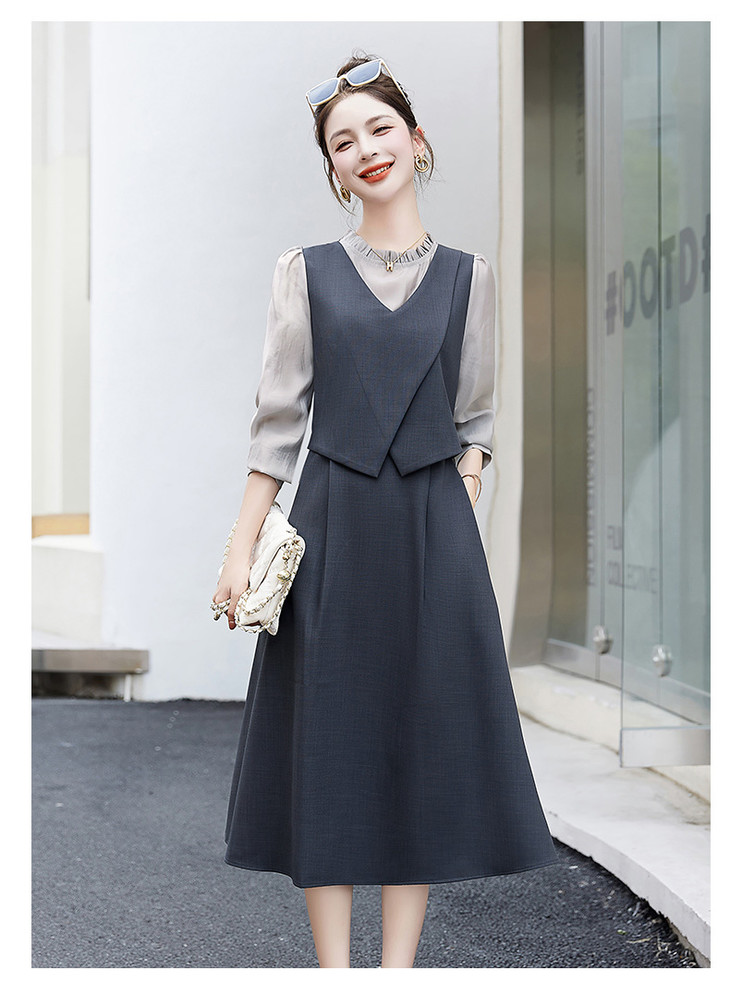 2024秋季新款圆领小个子减龄显长裙时尚拼接假两件连衣裙HR- HANYUSHE2366