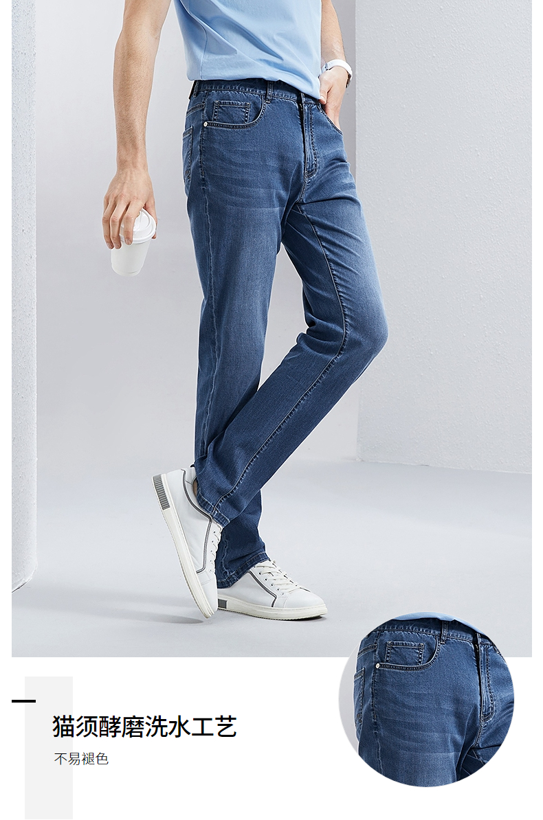 【含莱赛尔】柒牌水洗牛仔裤男2024夏季新款休闲凉感轻薄直筒长裤126H71200