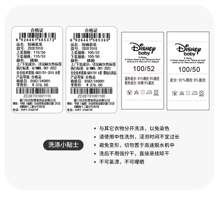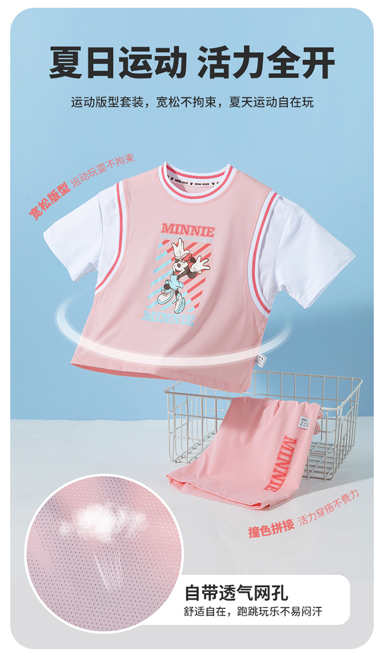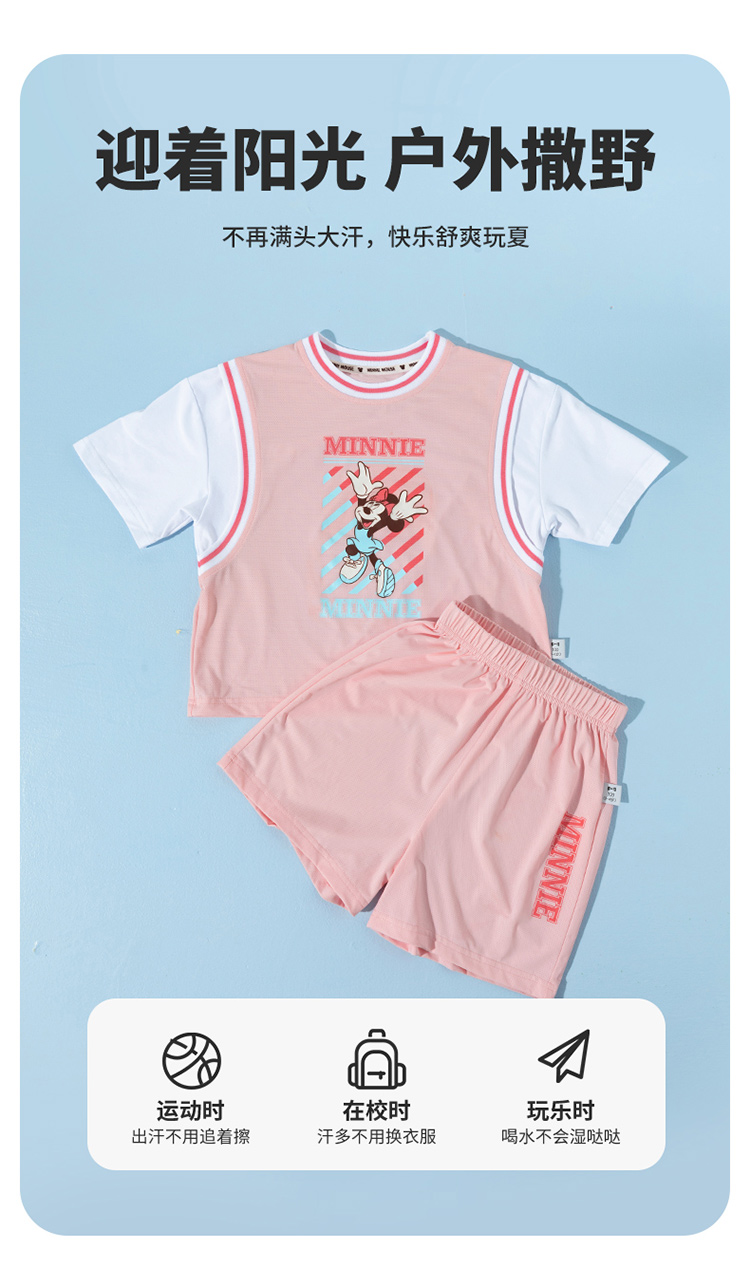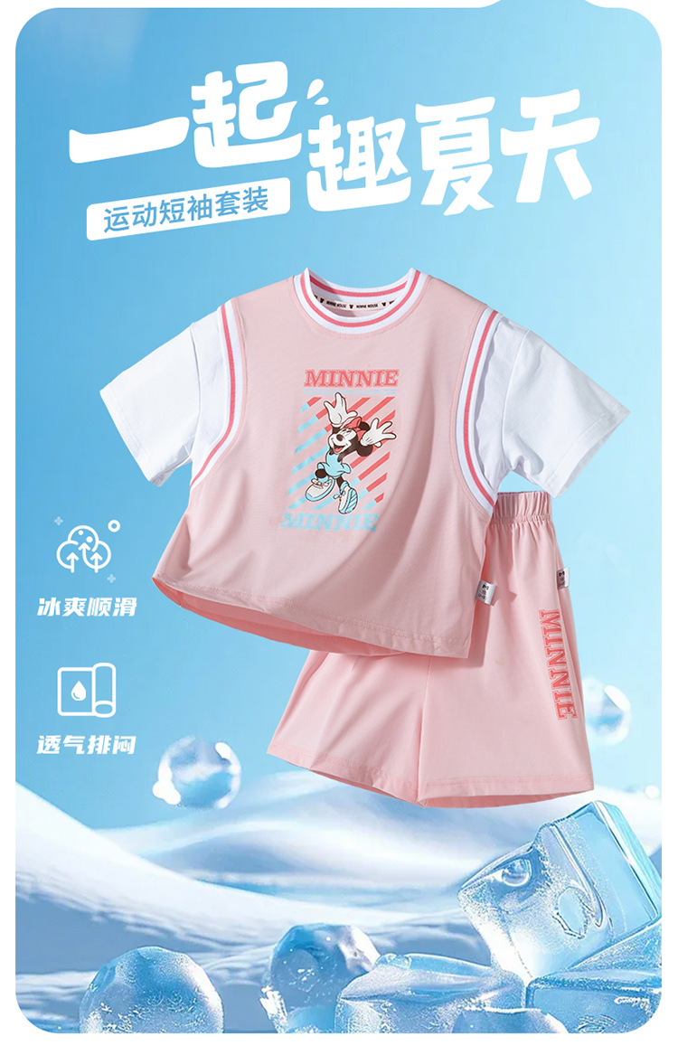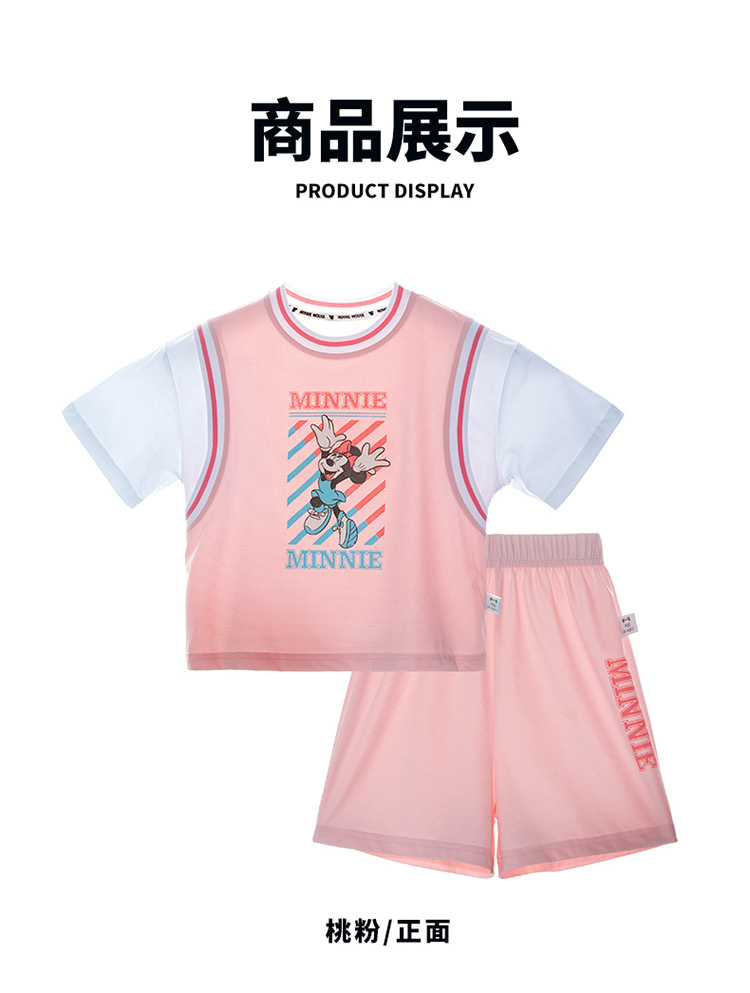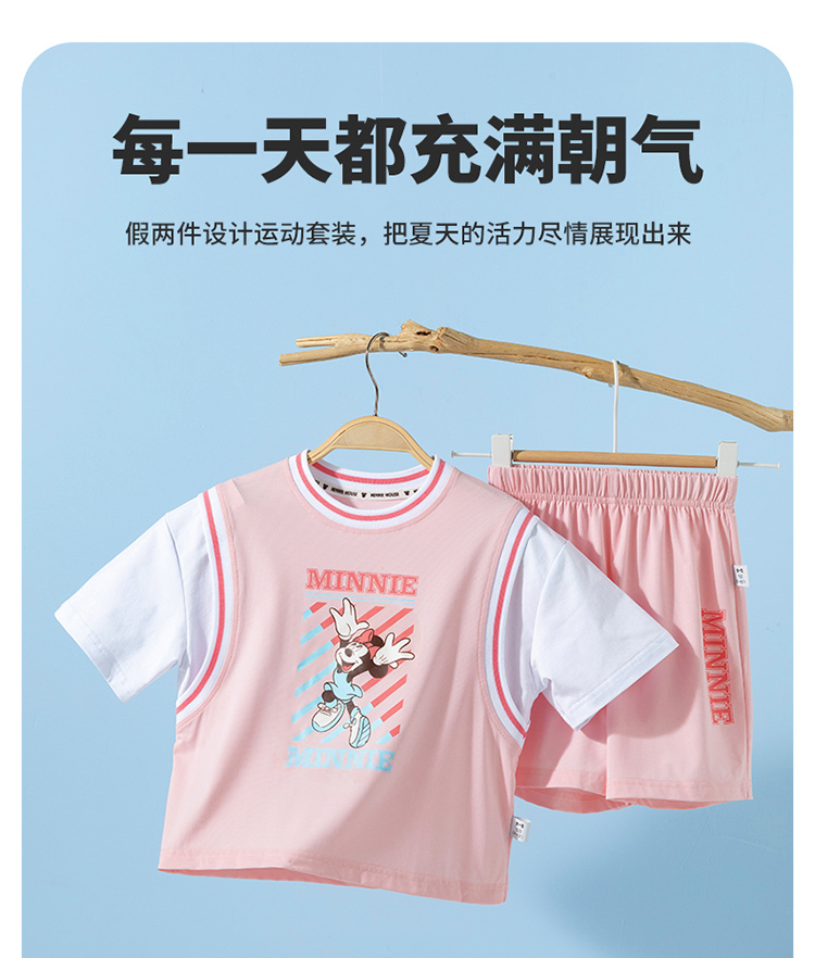 迪士尼宝宝(Disney Baby)女童短袖套装时尚休闲短袖短裤套装卡通夏季新款ZD2ET010