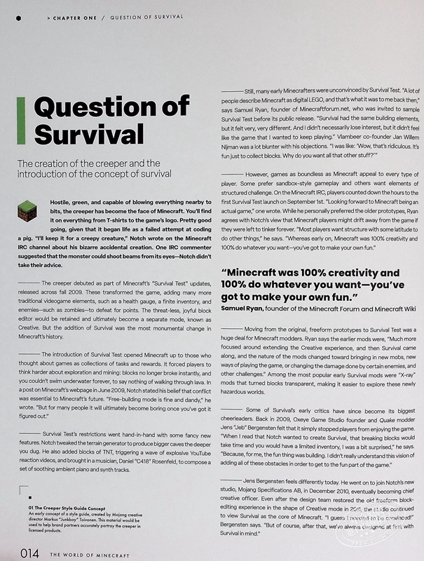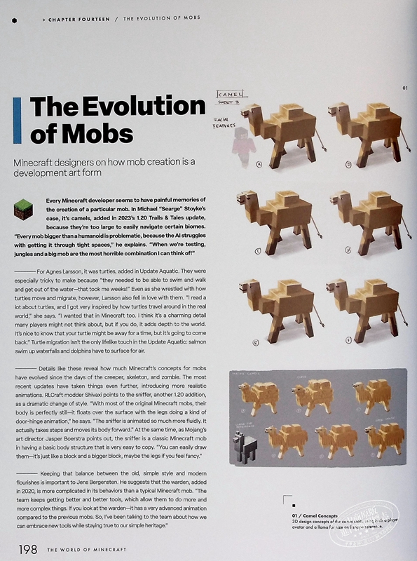《我的世界》是游戏历史的记录,结合了 Mojang 工作室的采访和游戏社区长期成员的回忆。阅读社区定义服务器(如 Hypixel)、模组(如 Feed The Beast)和频道(如 The Yogscast)成长背后的故事,以及 Lydia Winters 关于 Alex 的创作、Minecraft 慈善机构 Block by Block 的影响、幻影的起源以及更多见解的个人叙述。