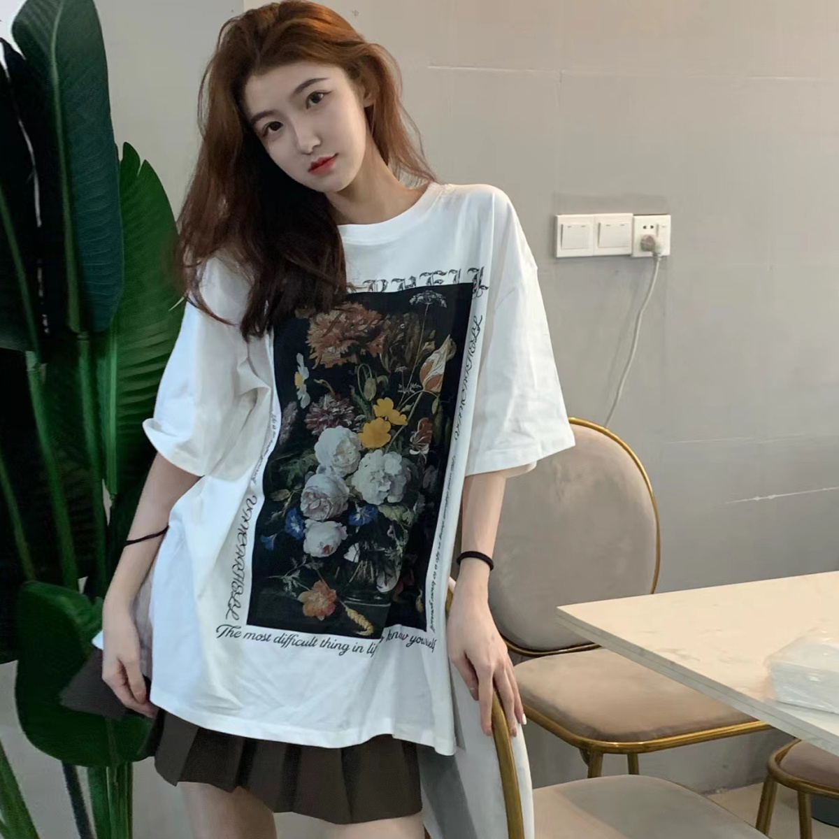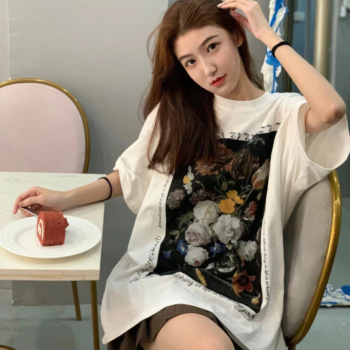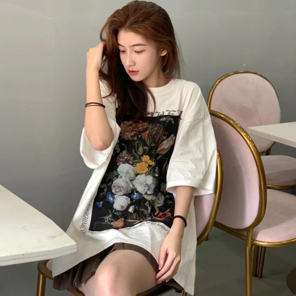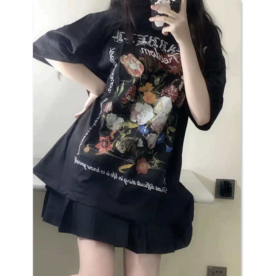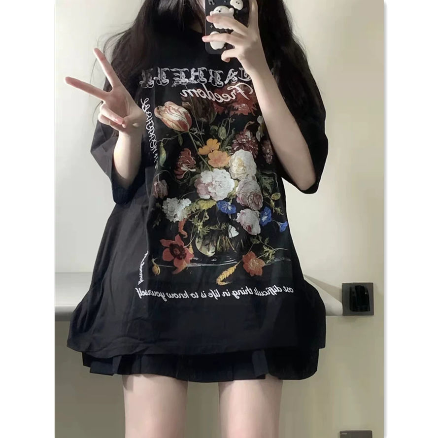 【美式复古花卉短袖T恤,时尚美观】黛唯梵爆款纯棉T恤,2022新款,小众设计上衣热卖