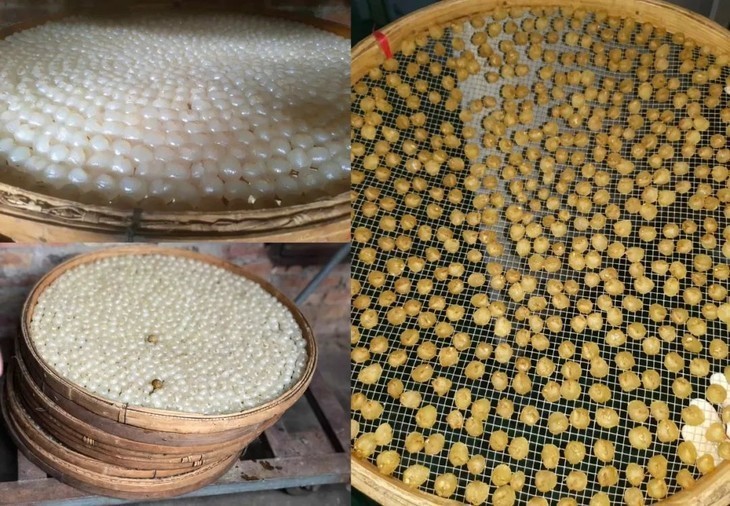 村里人一到龙眼季,就全在家里手剥龙眼,像这样剥去壳和核,放在土质的烤炉里,55度恒温烘烤一天一夜,烘干水分,却又不会夺去龙眼本身重要的——润。