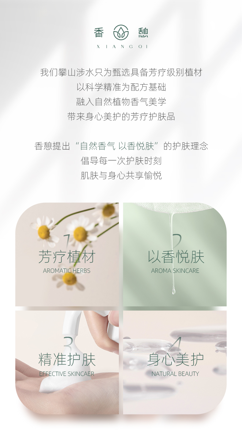 - XIANGQ香憩,是自然香气融合植萃功效的芳疗护肤品牌,提出“自然香气 以香悦肤”的护肤理念,倡导每一次护肤时刻,肌肤与身心共享愉悦。