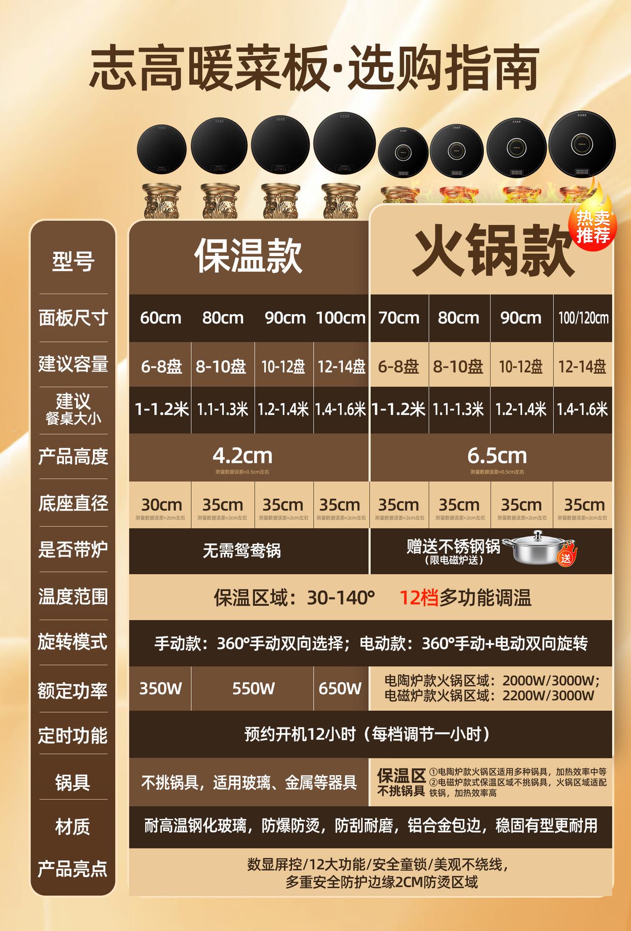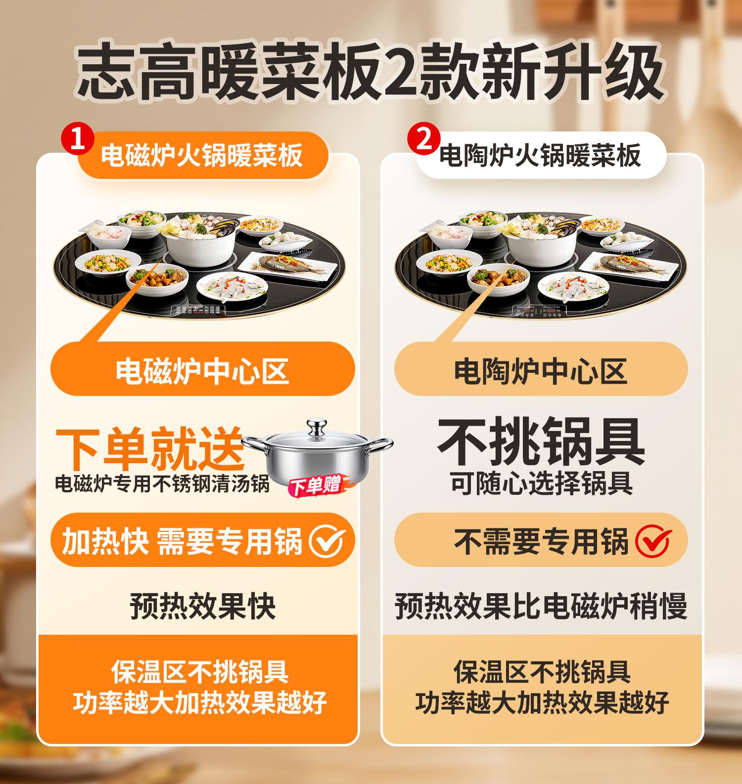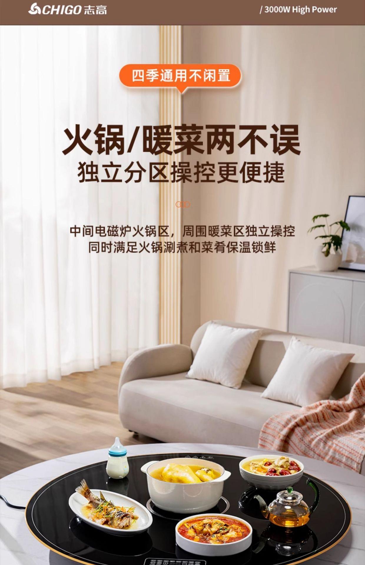 志高暖菜板家用多功能热菜板加热保暖桌子可旋转保温菜板餐桌垫