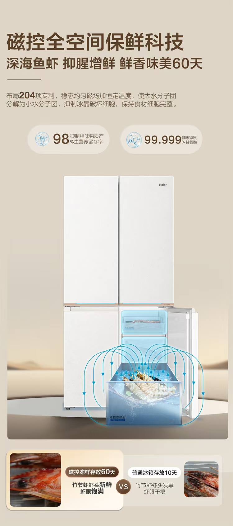 麦浪9系-海尔冰箱572升全空间制冰十字风冷麦香石BCD-572WGHTD1BYCU1