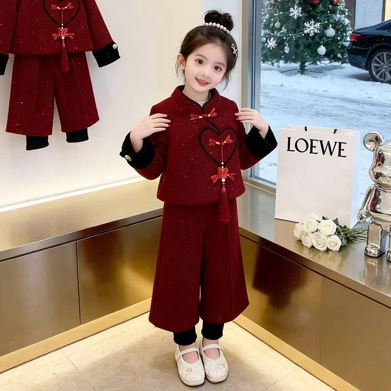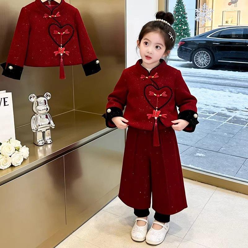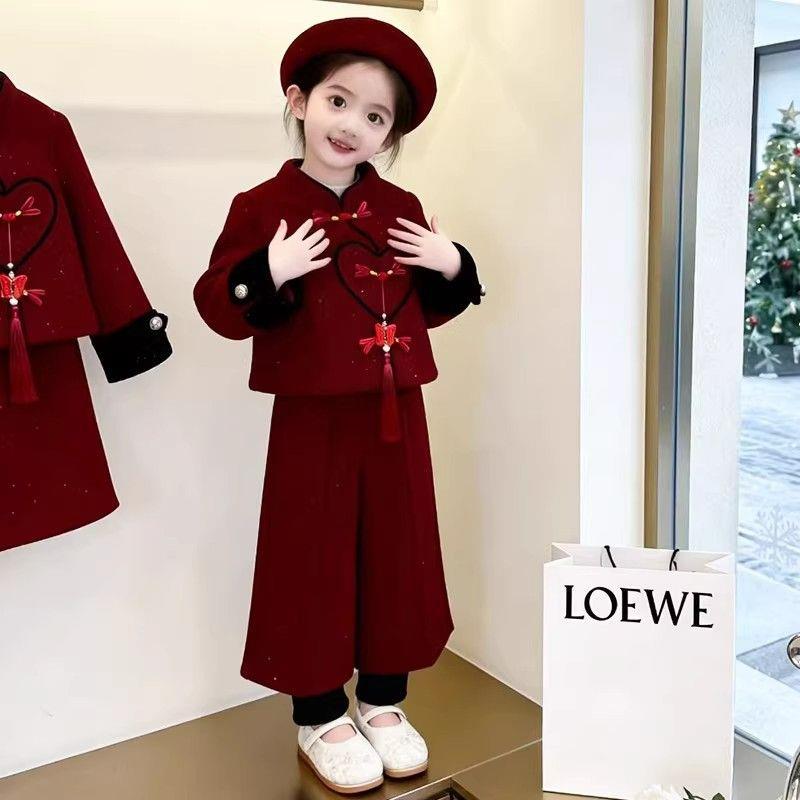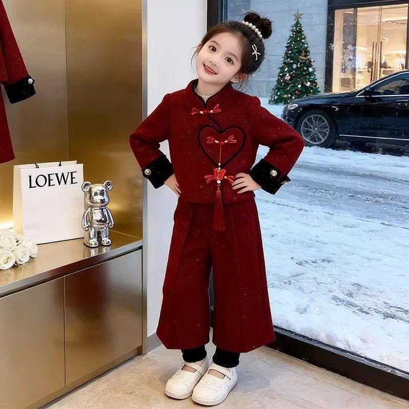 女童本命年衣服秋冬过年套装儿童红色新年衣服12岁女孩时尚拜年服