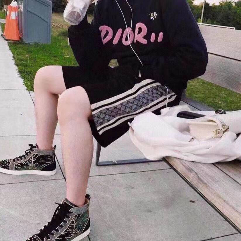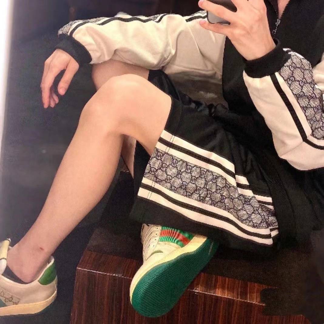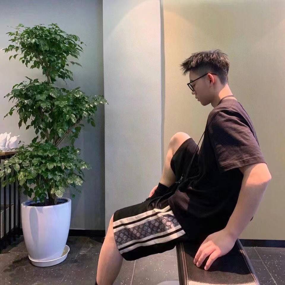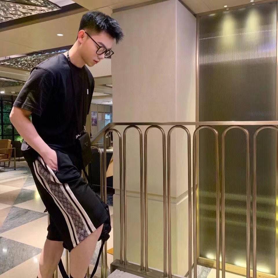 代购级别版本!!GUCCI 双G字母提花侧边条纹情侣短裤GUC2570 宽松版型