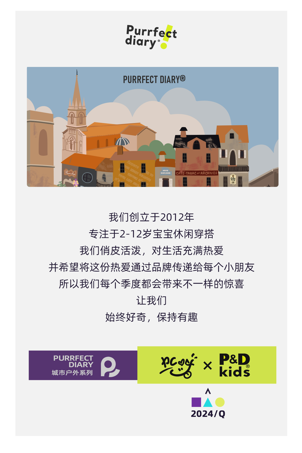 Purrfect-Diary专注于贴近自然随性的穿着概念,轻奢平价的童装文化传播,在产品设计上更加注重婴童穿着的舒适性、安全性、更出众的国际化品牌,将欧美的育婴文化在中国进行深入的传播与推广。