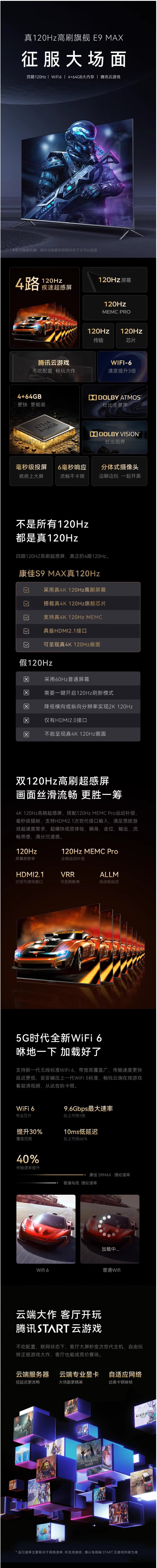 KKTV康佳(912716)75E9 120HZ狂暴高刷游戏电视WiFi6130色域12bit液晶