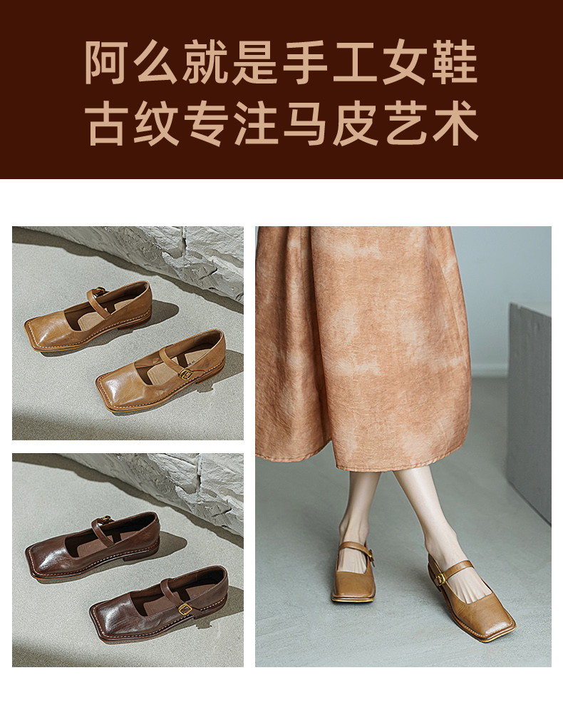 【阿么古纹马皮鞋】一字扣带玛丽珍女鞋2025新款英伦风小众单鞋2CM