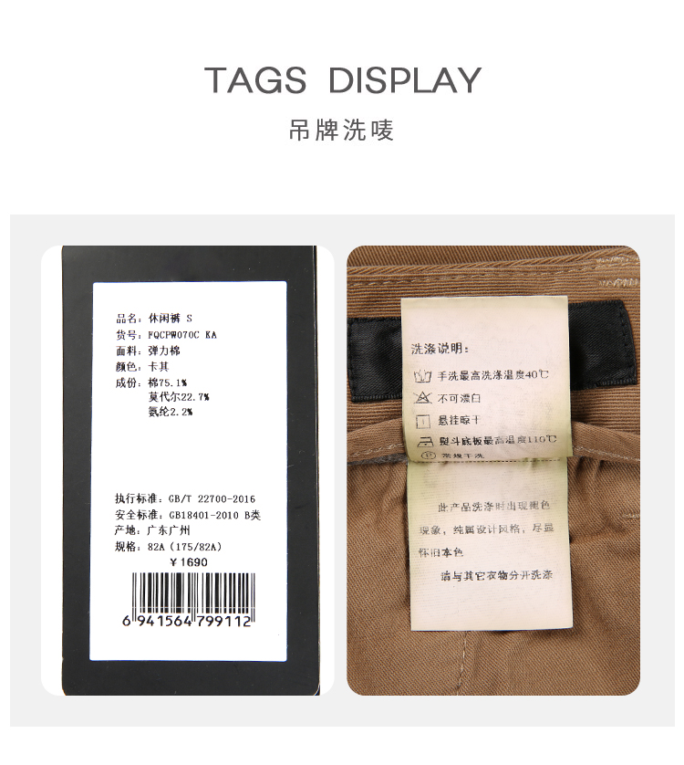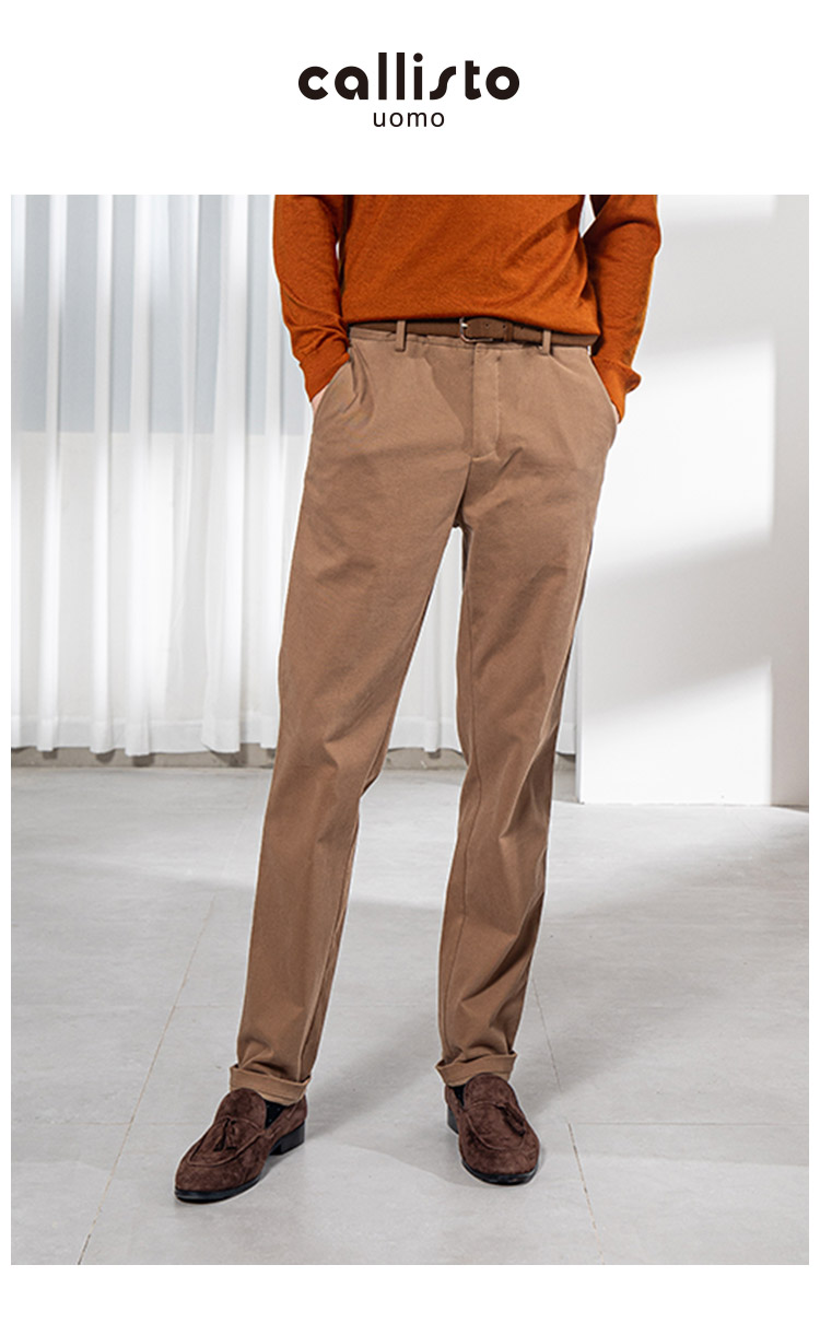 callisto卡其弹力棉休闲裤 FQCPW070C