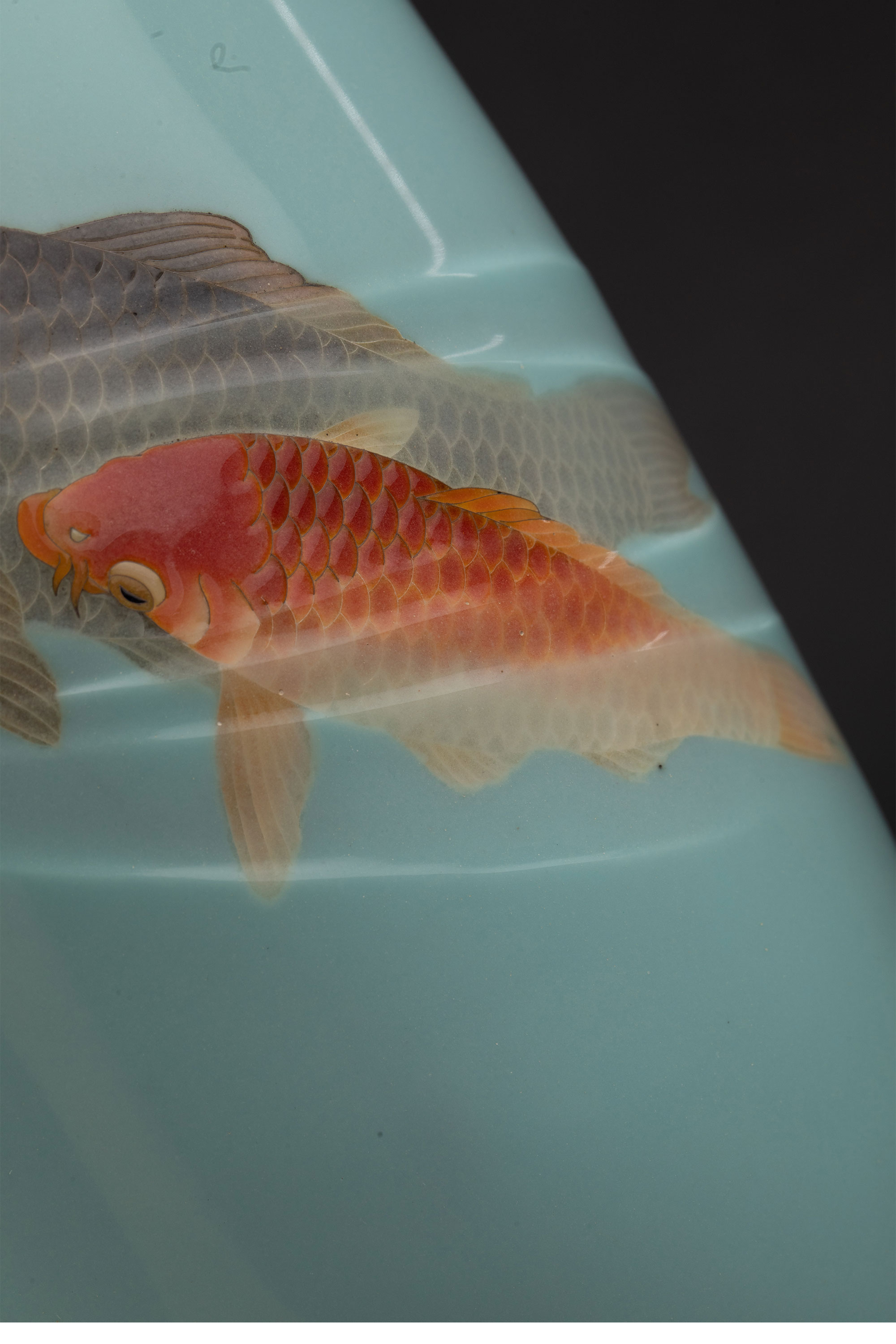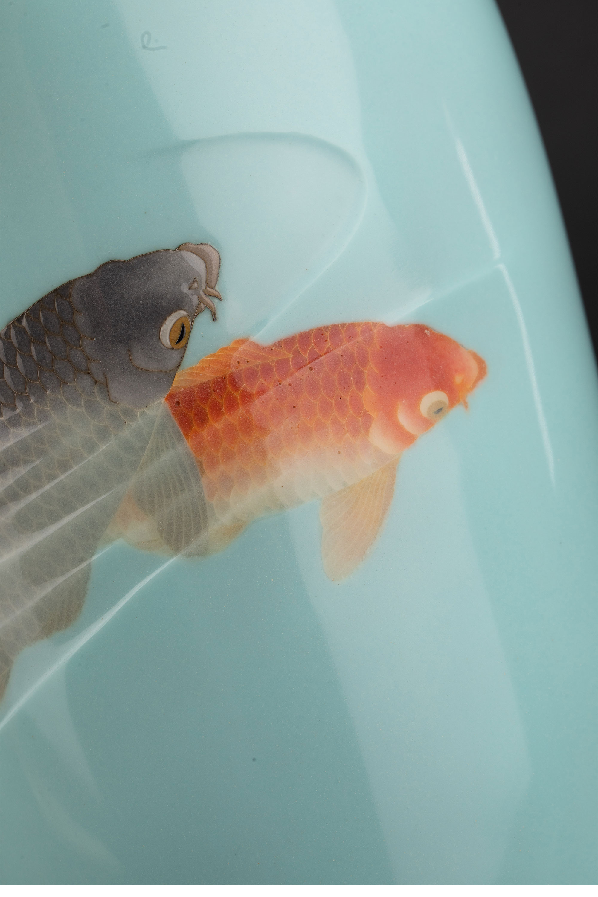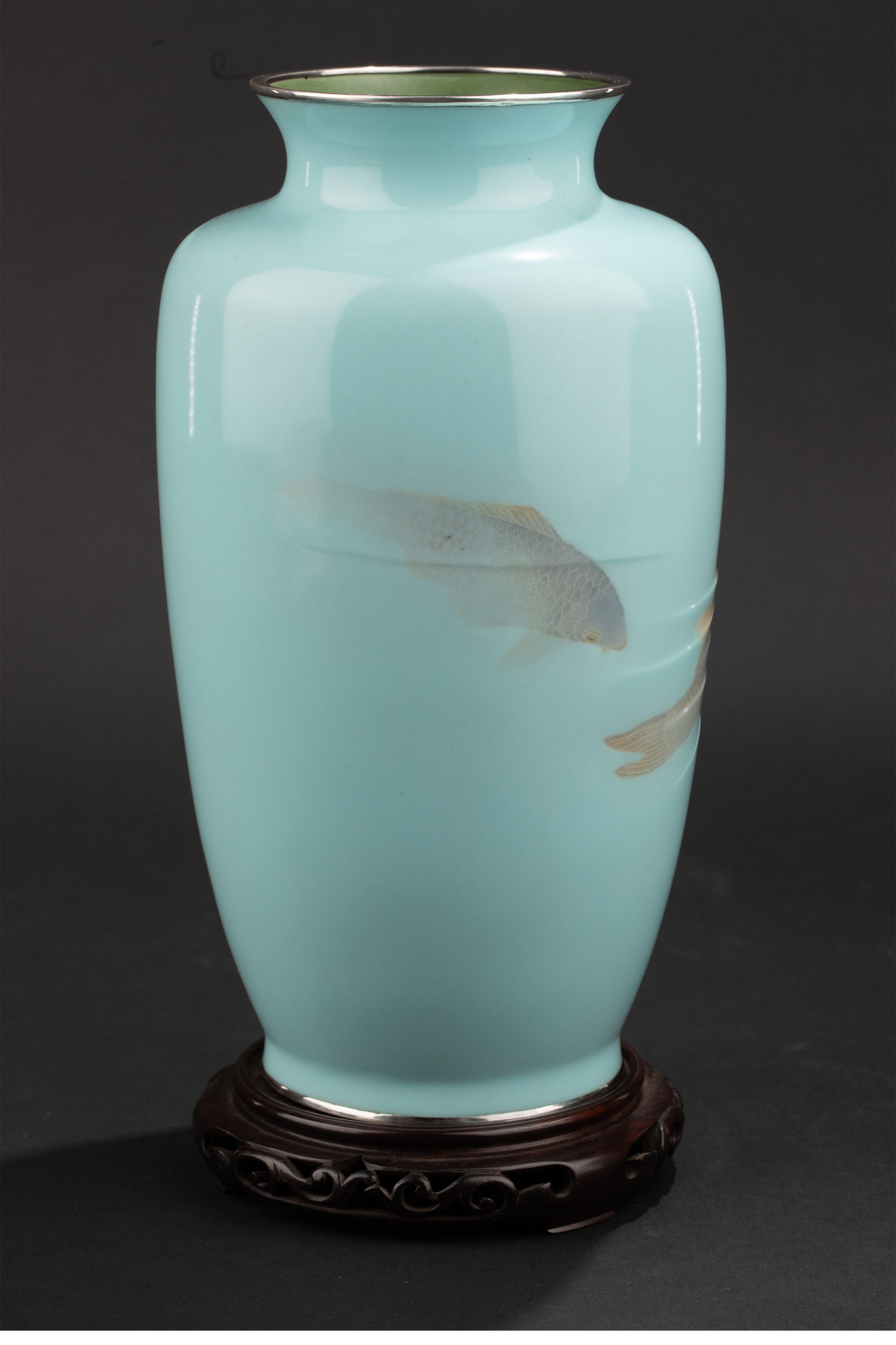 20世纪日本大正时期七宝烧大师権田広助出品「遊鯉」主题七宝烧赏瓶一对