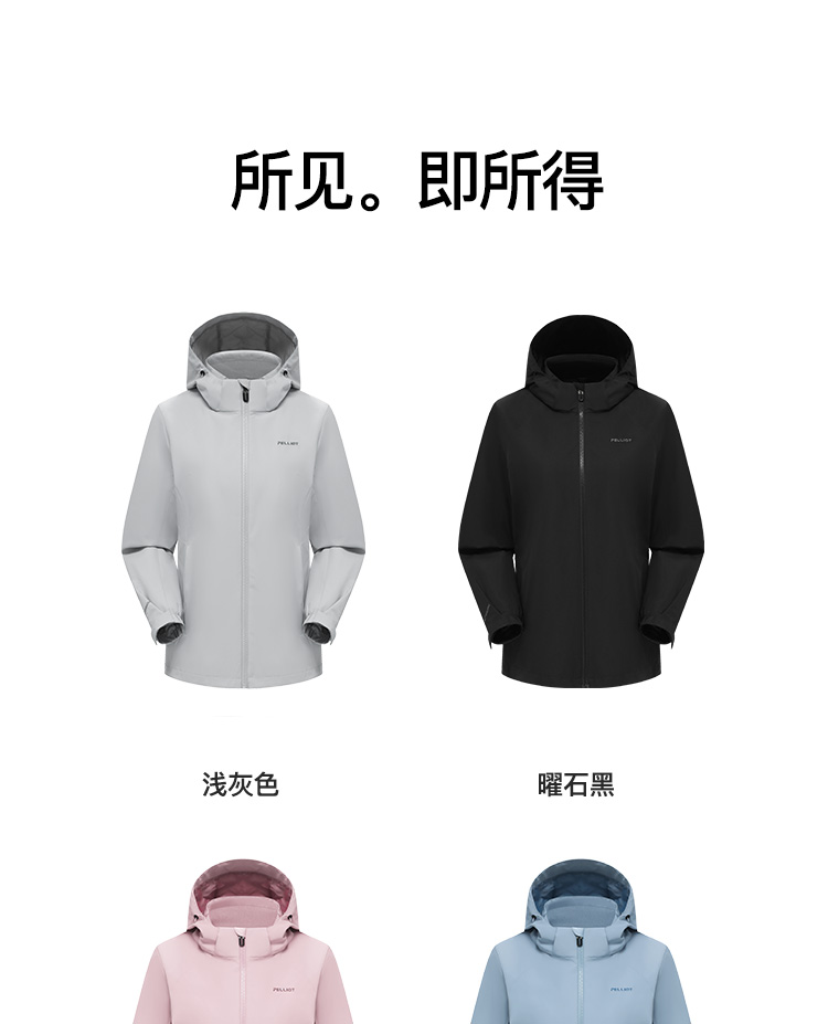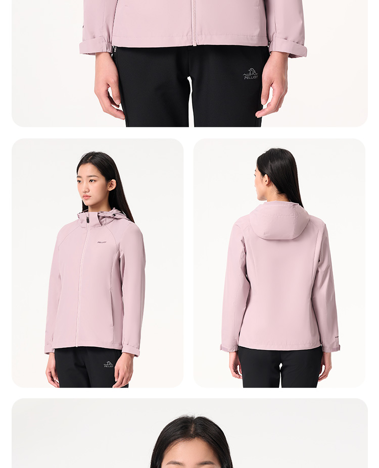 伯希和连帽外套女防风防泼户外多口袋登山服运动立领夹克轻量风衣