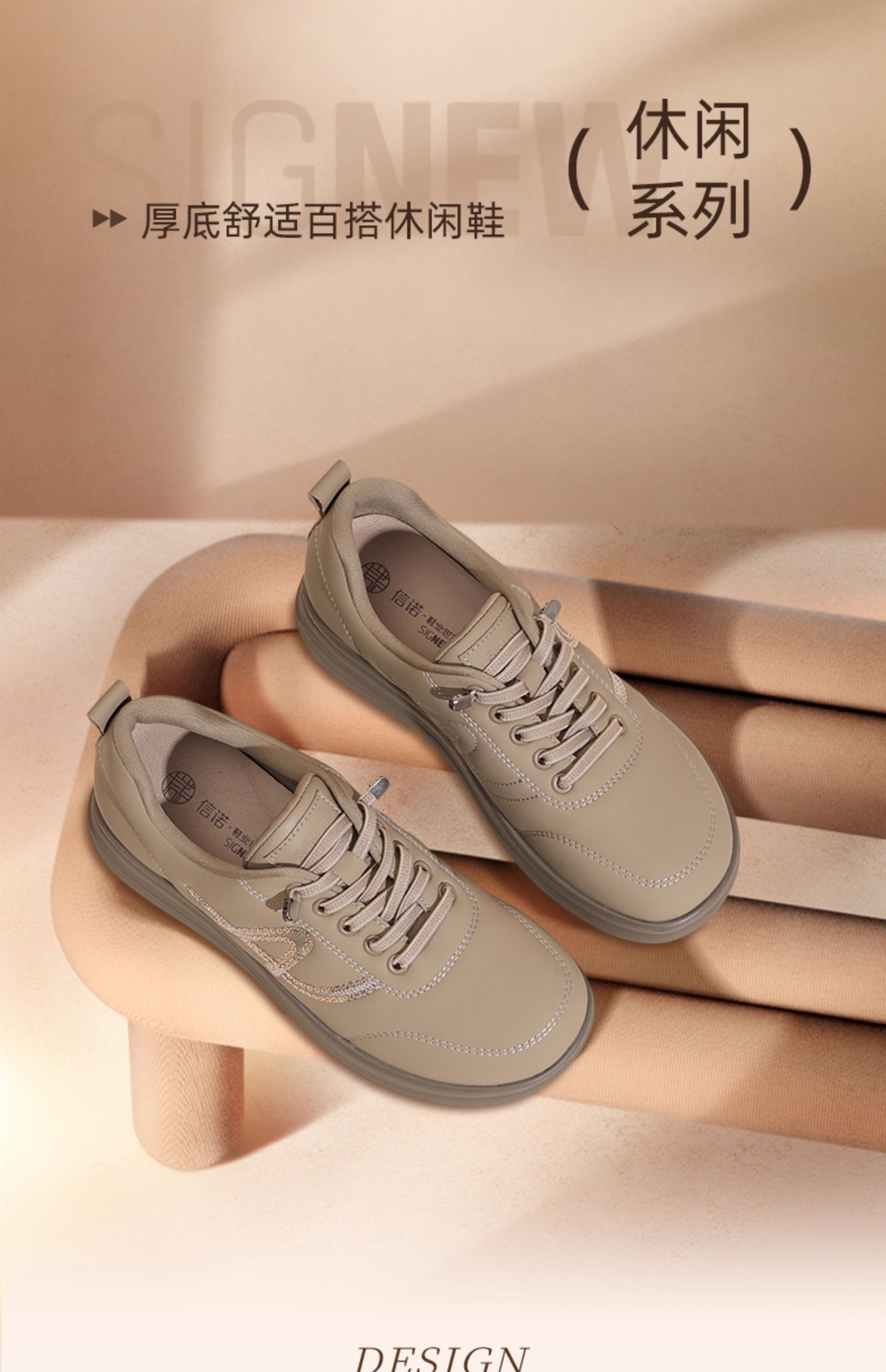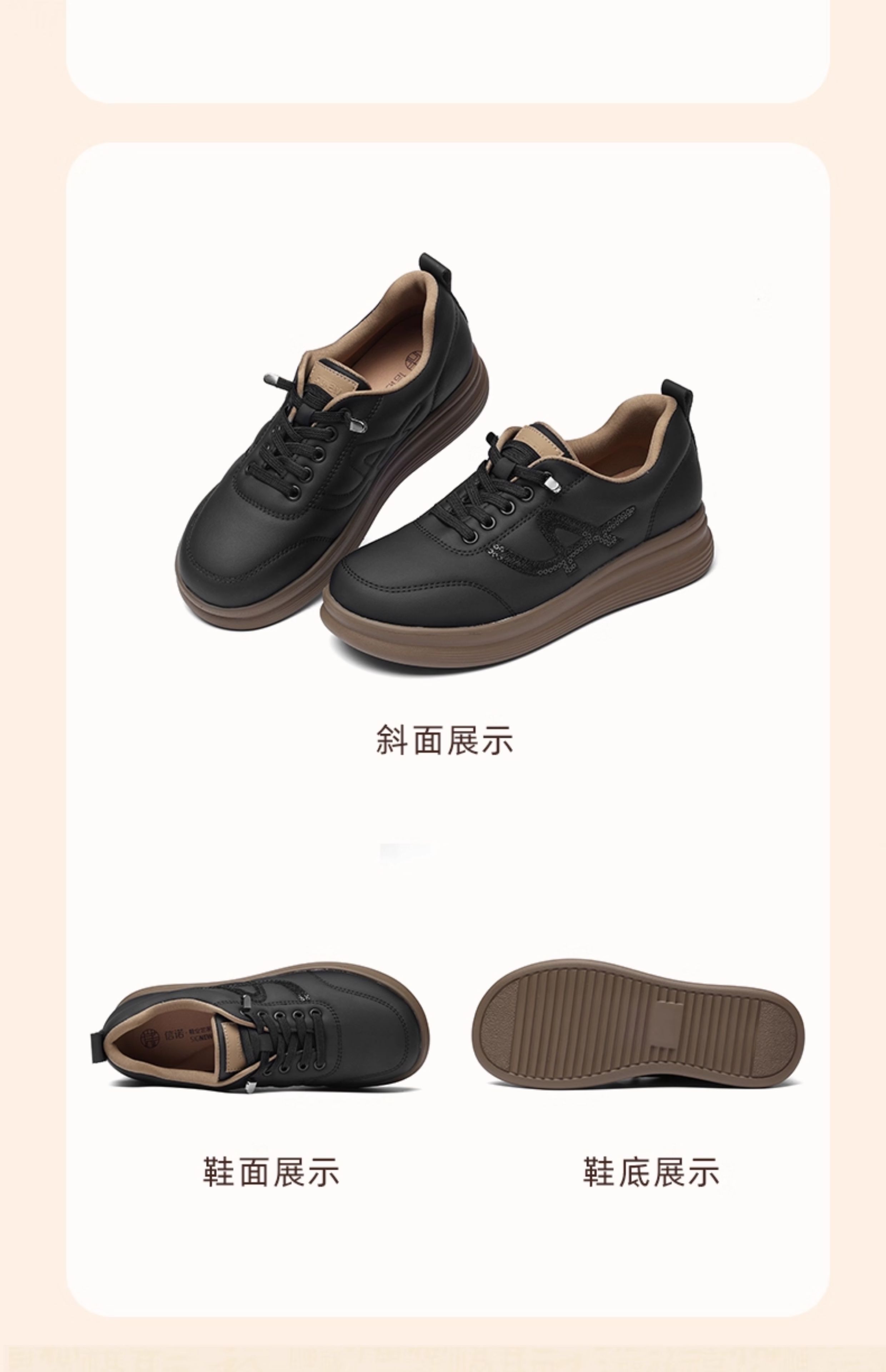 信诺真皮妈妈鞋子女复古软底运动休闲皮鞋舒适中老年2025秋季新款5Q5030-2T