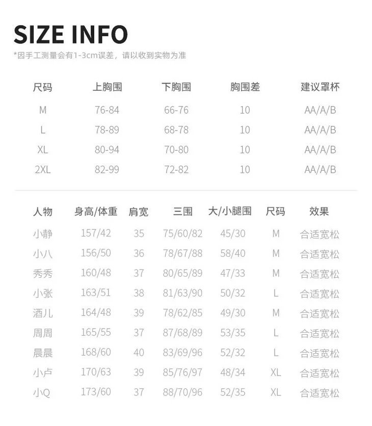 此款内衣是通杯,AA/A/B/C/D都可穿,请参考上胸围和下胸围选择合适的尺码!也可根据平时穿内衣的尺码选择就OK,卡码拍大!