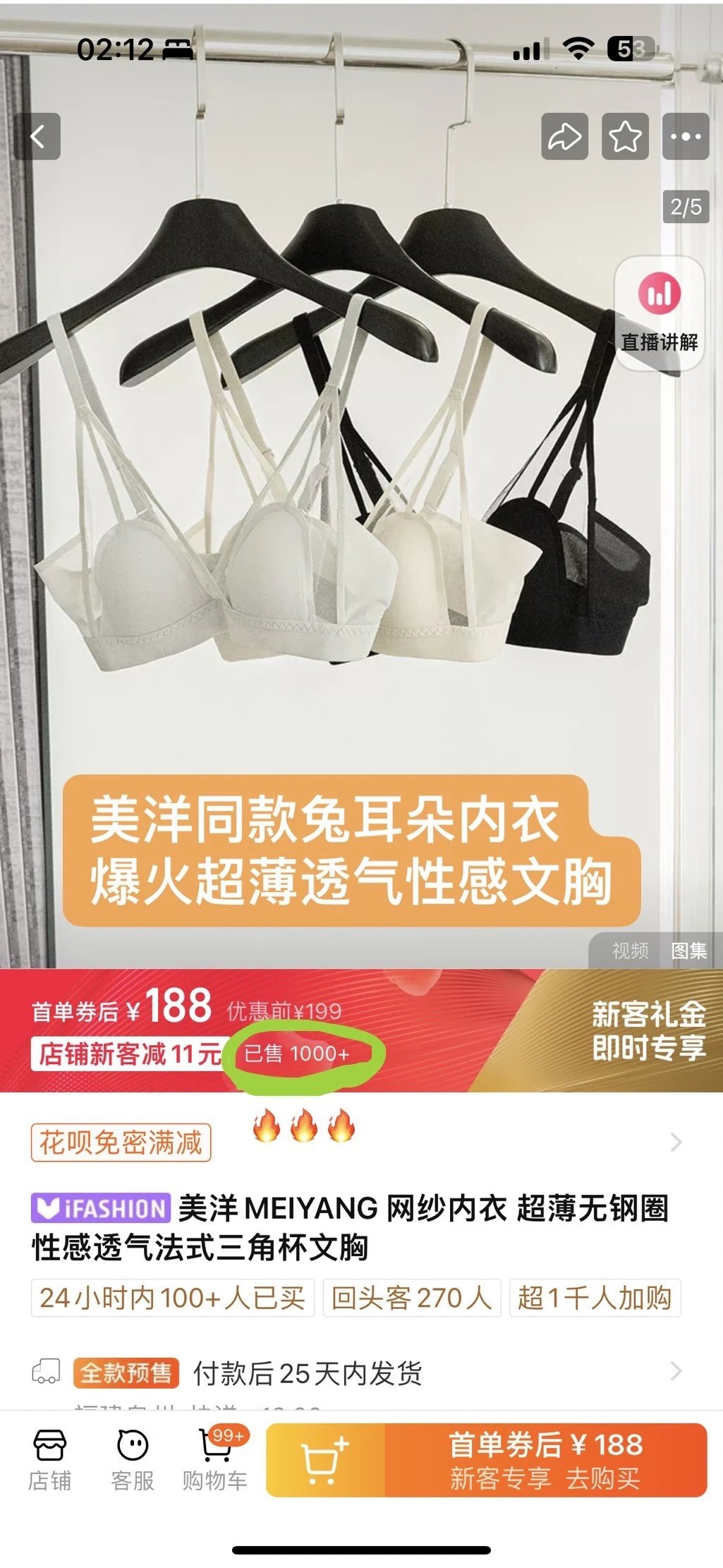 高级的性感不是裸露 而是属于若隐若现的魅力诱惑~ 大网红美洋店铺同款兔耳朵内衣 原厂好货品质保证 店铺零头的价格带你入手今夏zhui好穿的内衣!! 美妞们穿的时候就能全方位感受舒适和有型! 小胸穿不空杯,大胸穿不显胖,穿T恤身材又瘦又好看!不同胸型,都能穿出du一无二的迷人气质