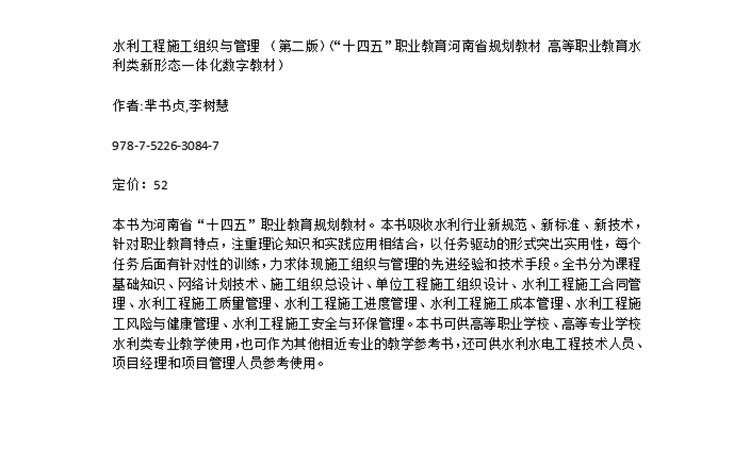 水利工程施工组织与管理 (第二版)(“十四五”职业教育河南省规划教材 高等职业教育水利类新形态一体化数字教材)