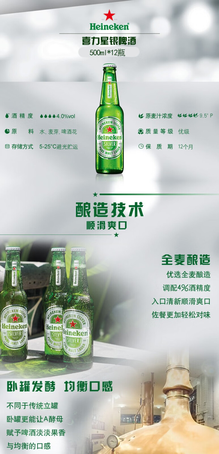 喜力星银 啤酒 瓶装 500ml*1瓶/12瓶