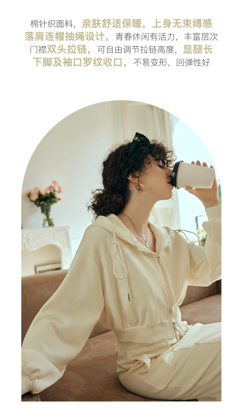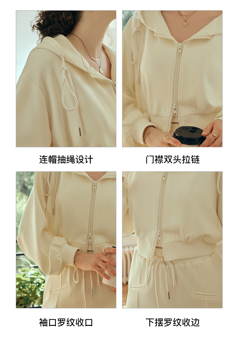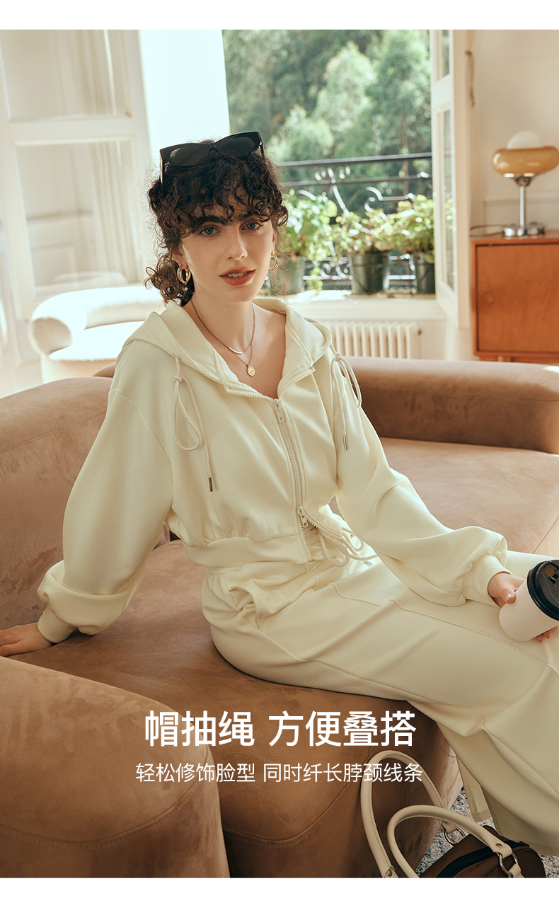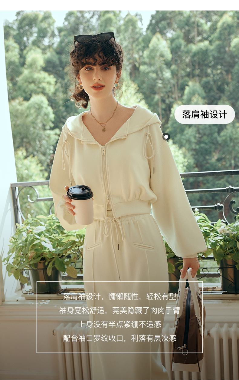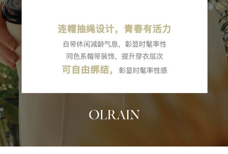 OLrain欧芮儿针织短外套女初秋2023新款宽松运动连帽抽绳卫衣开衫