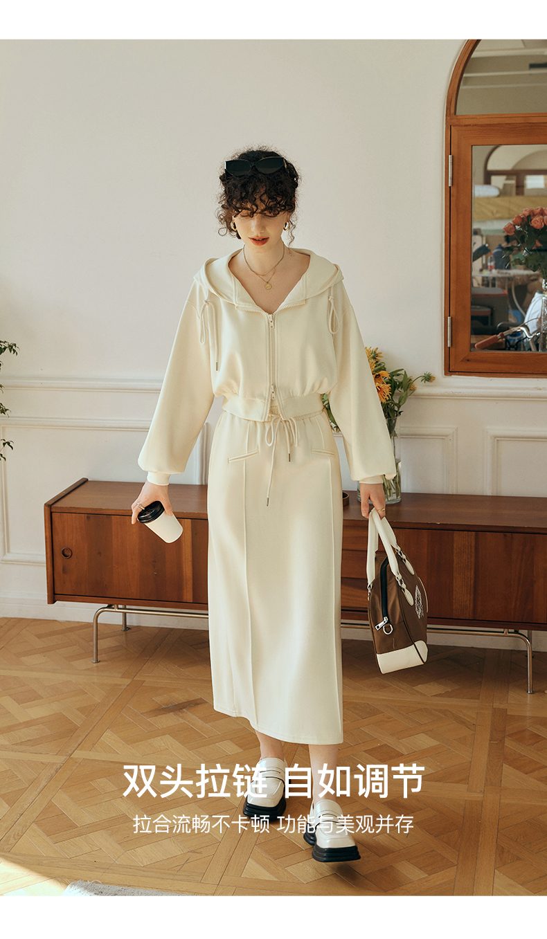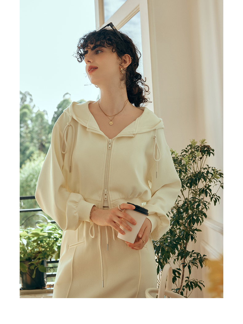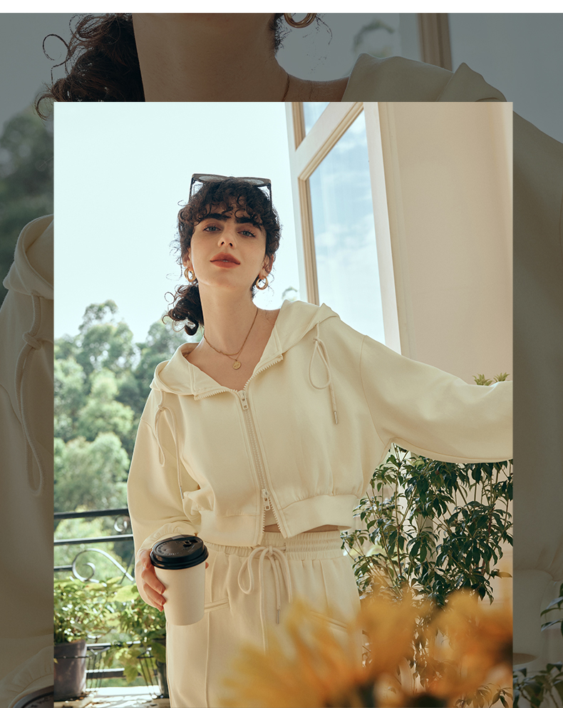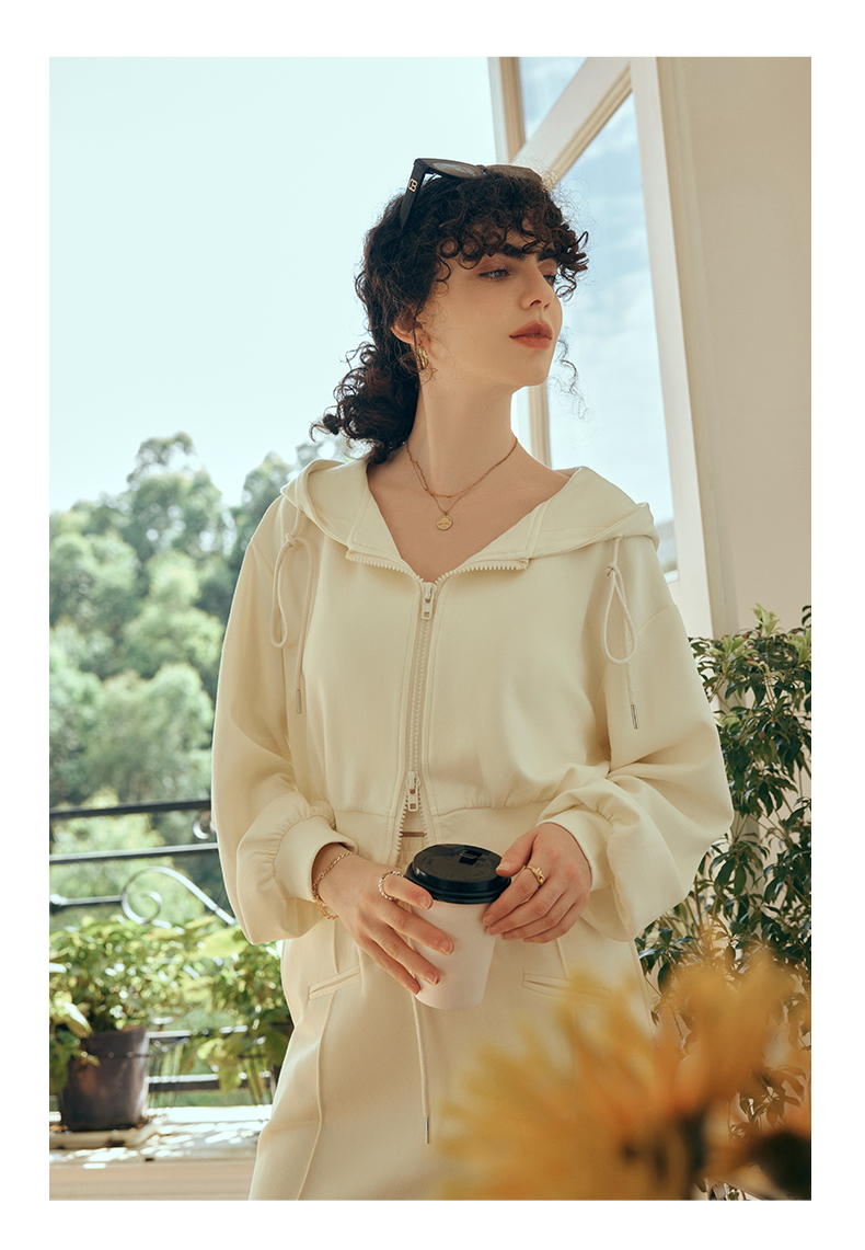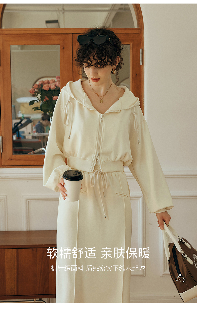 OLrain欧芮儿针织短外套女初秋2023新款宽松运动连帽抽绳卫衣开衫