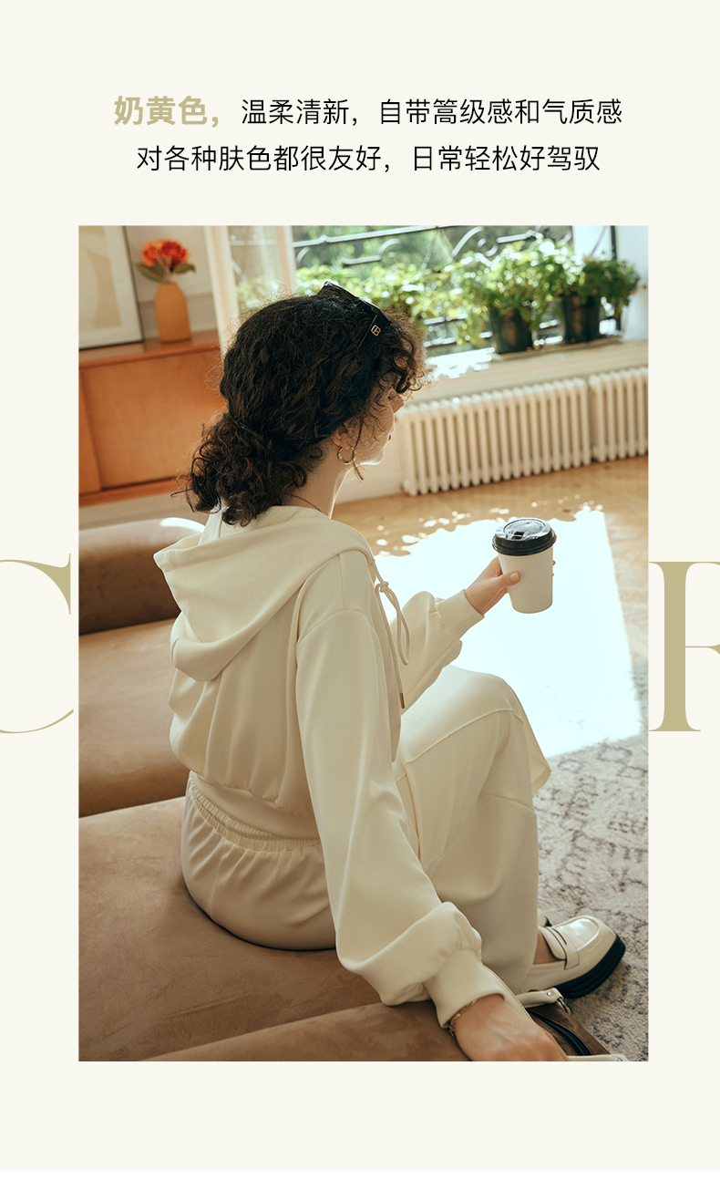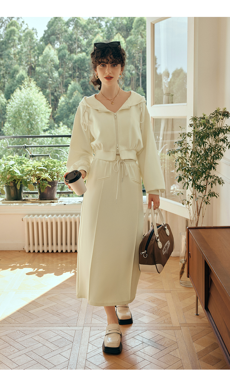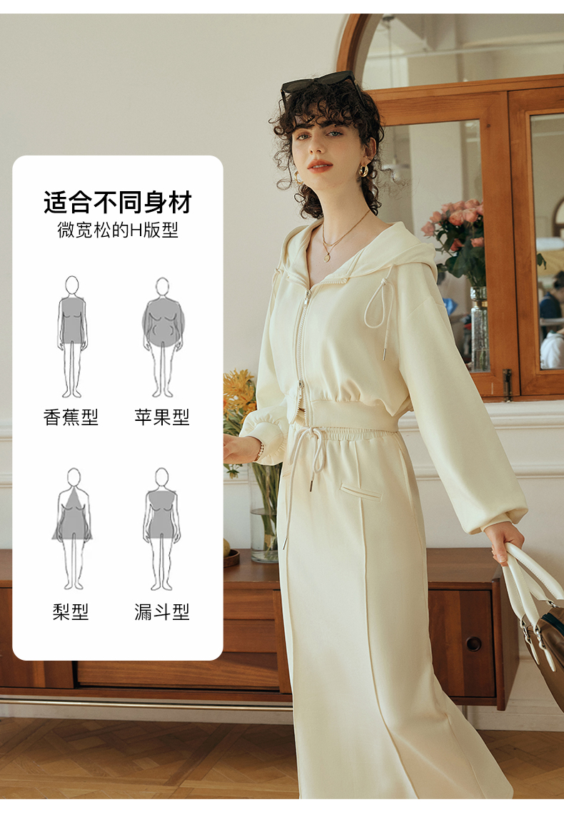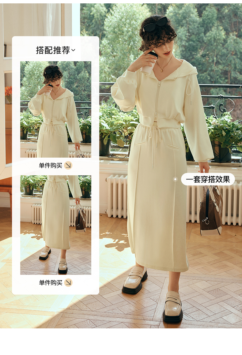 OLrain欧芮儿针织短外套女初秋2023新款宽松运动连帽抽绳卫衣开衫