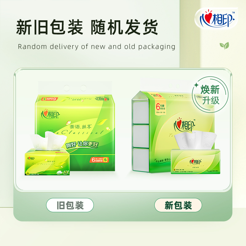 DT15130(提装)心相印茶语丝享系列130抽三层塑装纸面巾6包(新老包装随机发货)